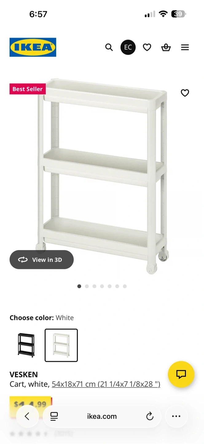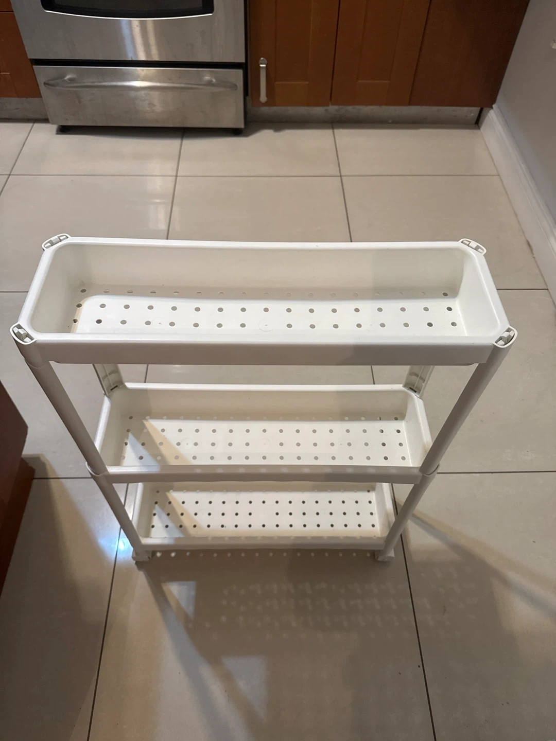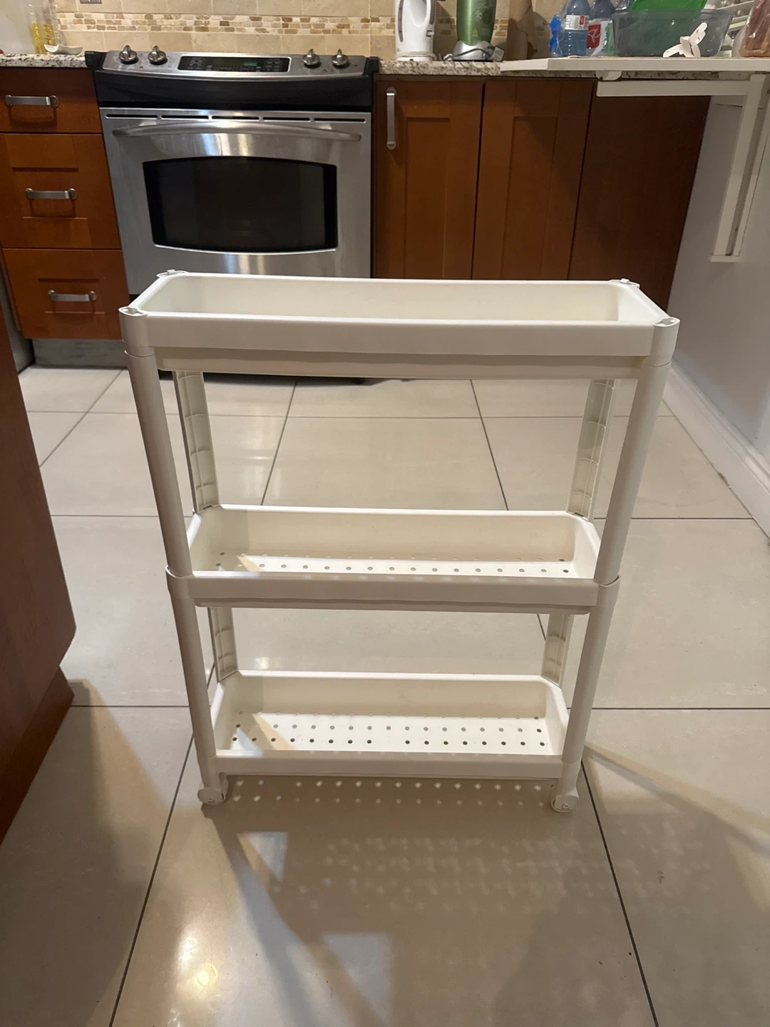 Selling a white IKEA Vesken cart! It's in great shape and ready to help you organize your space. It measures 54x18x71 cm (21 1/4x7 1/8x28 ").
