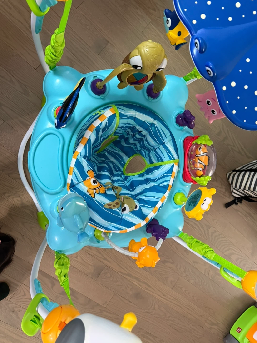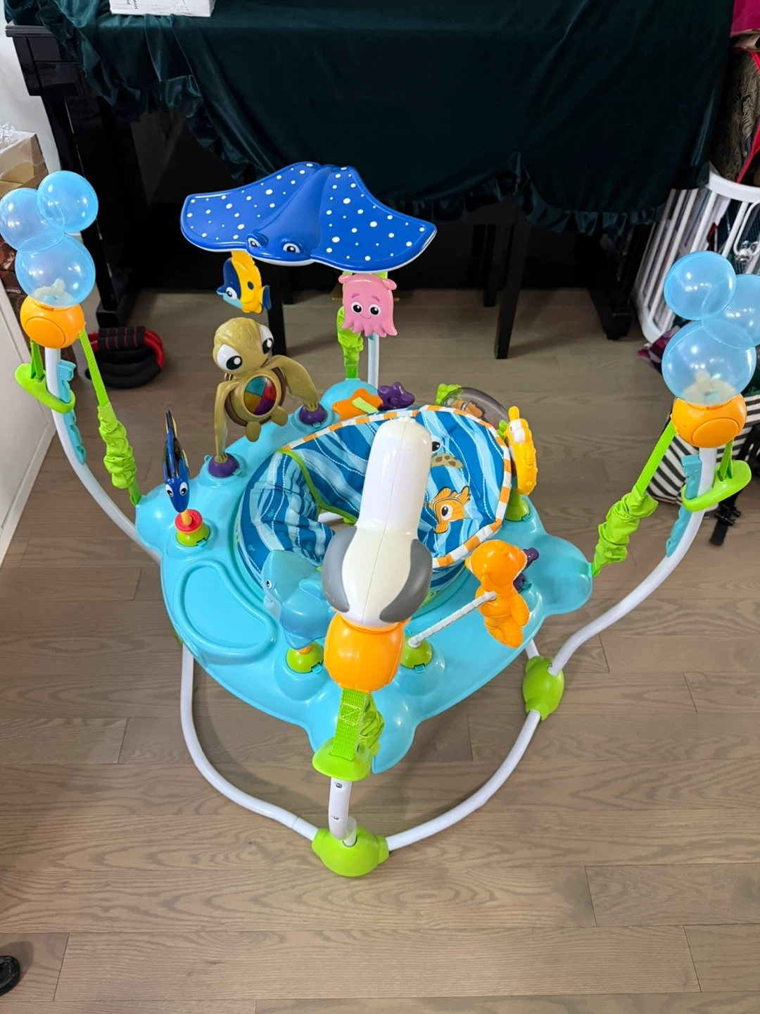 This Disney baby finding Nemo activity center Jumper is perfect for keeping your little one entertained! It's in excellent condition and ready for a new family to enjoy. Lots of fun activities to keep baby happy and engaged.