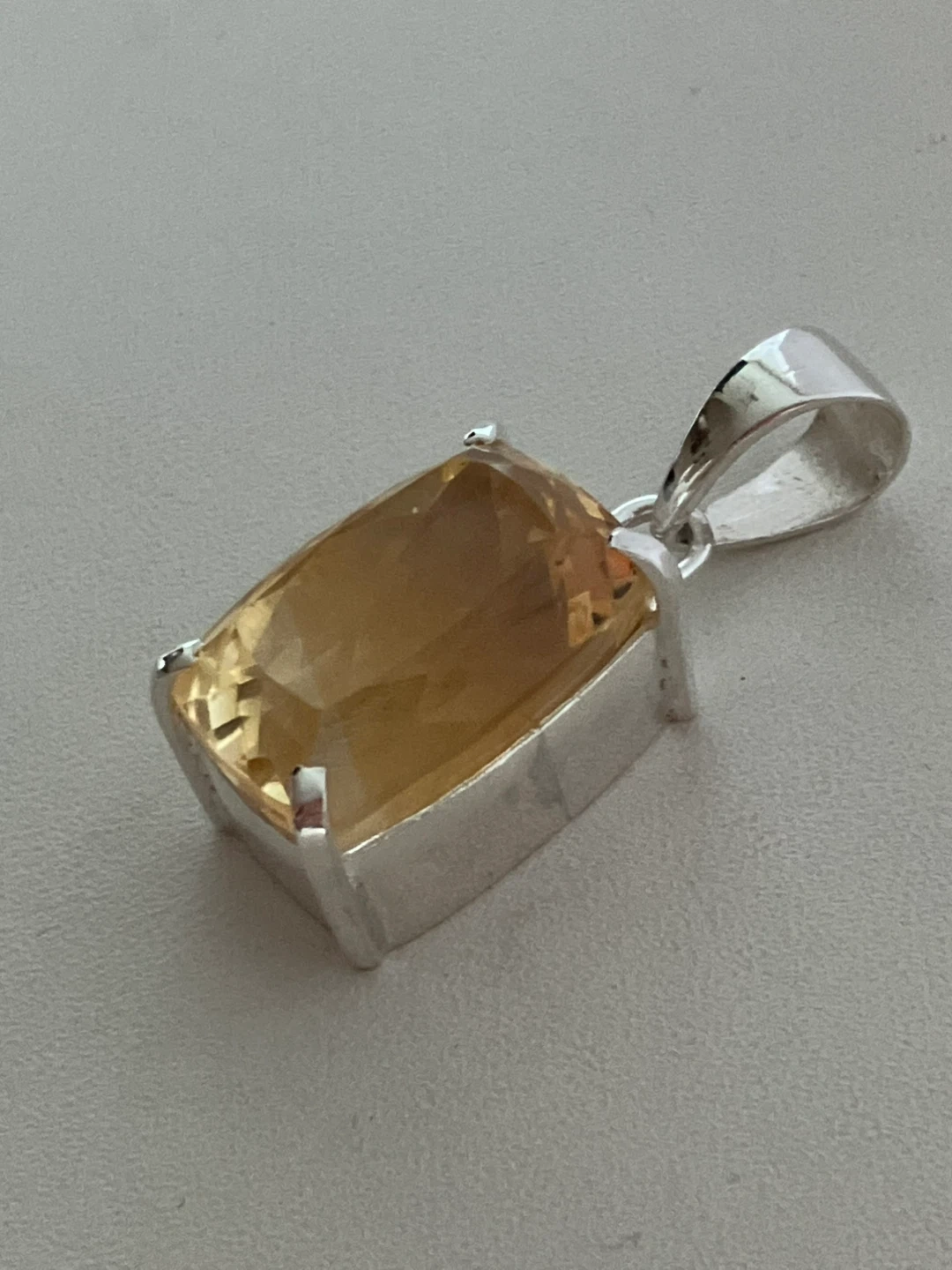 A lovely citrine pendant with a sterling silver setting. The stone is a beautiful warm yellow colour. It's in great condition and ready to add a touch of sunshine to your jewellery collection!