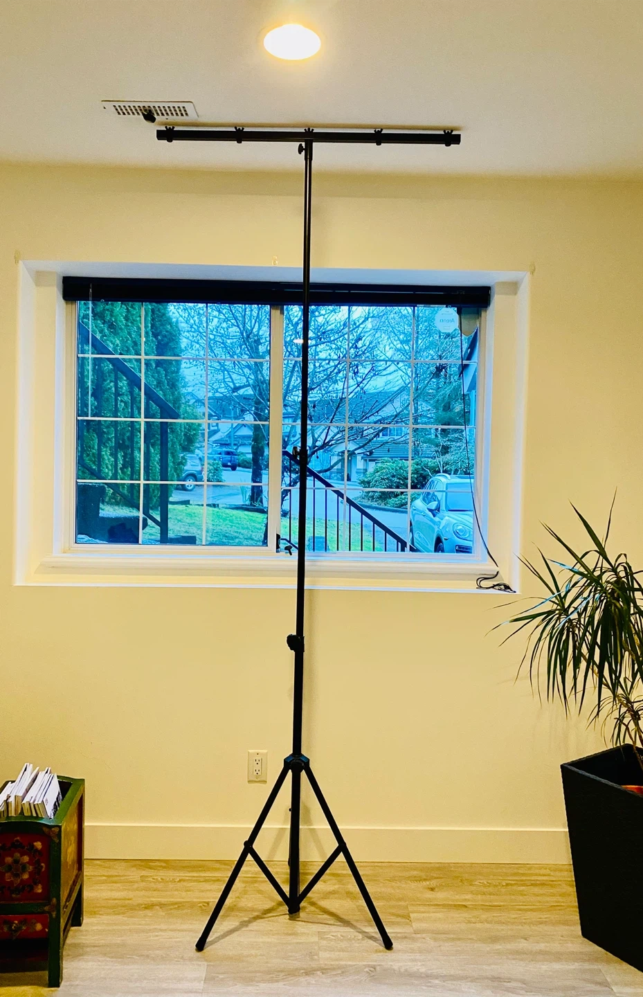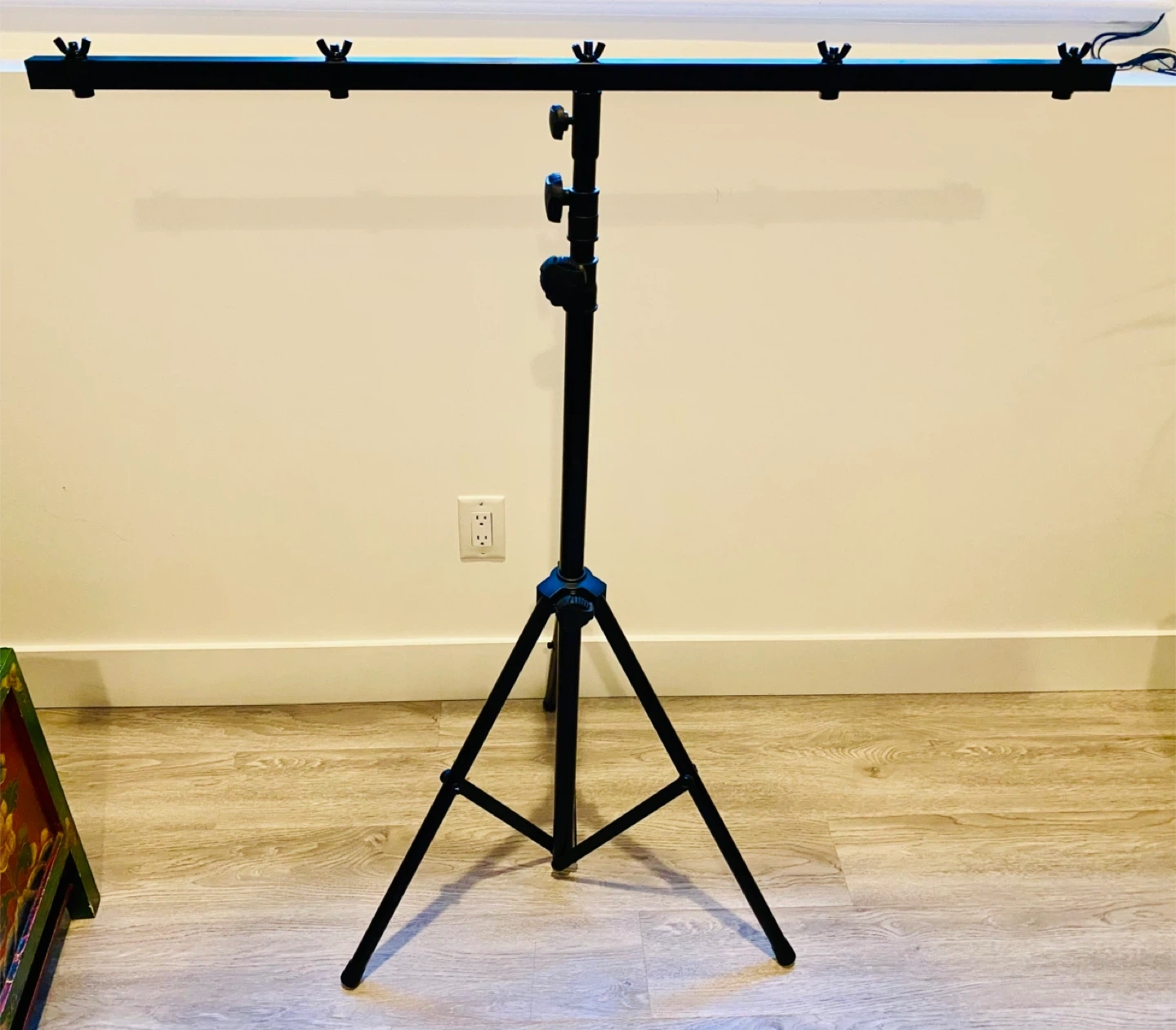 * STURDY - The stand weighs 12 lbs, T-bar length of 35 inches, four mounting points on the bar, and xx inches between the mounting holes, allowing you to mount multiple fixtures on one stand. Supports up to 66 lbs (30 kg) of lighting