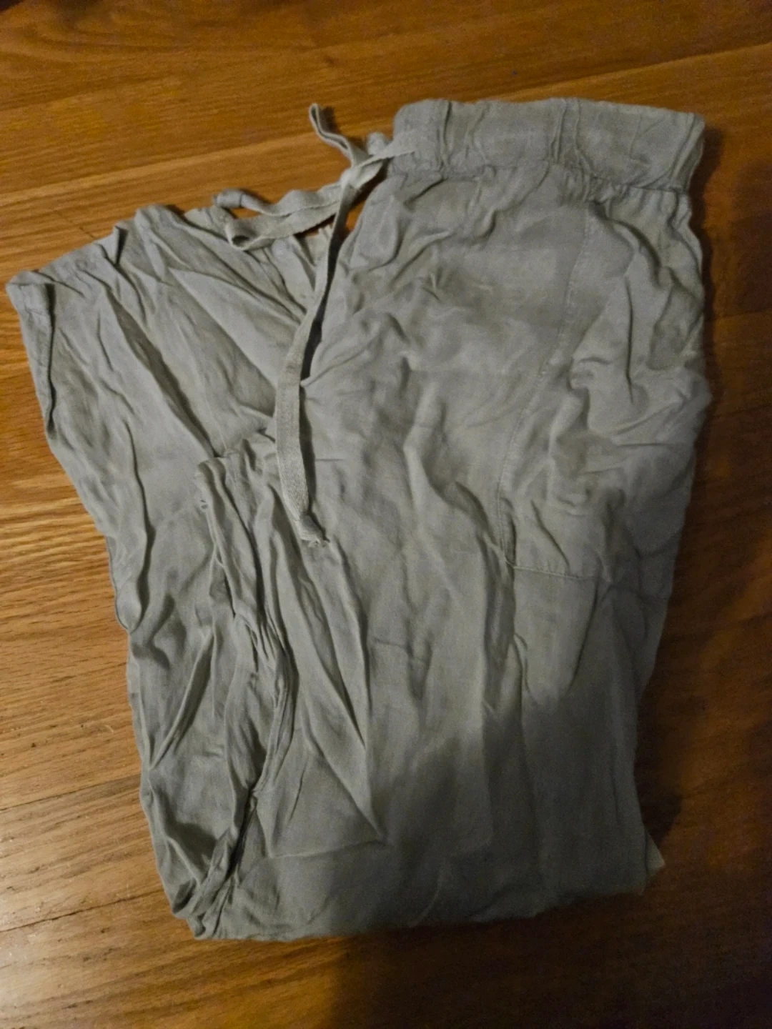 Selling these comfy grey linen blend pants! They feature a drawstring waist and a relaxed fit. Perfect for casual wear or lounging around the house. They're in great condition and ready for a new home! Would look super cute with sandals during the summer or on vacation ๐