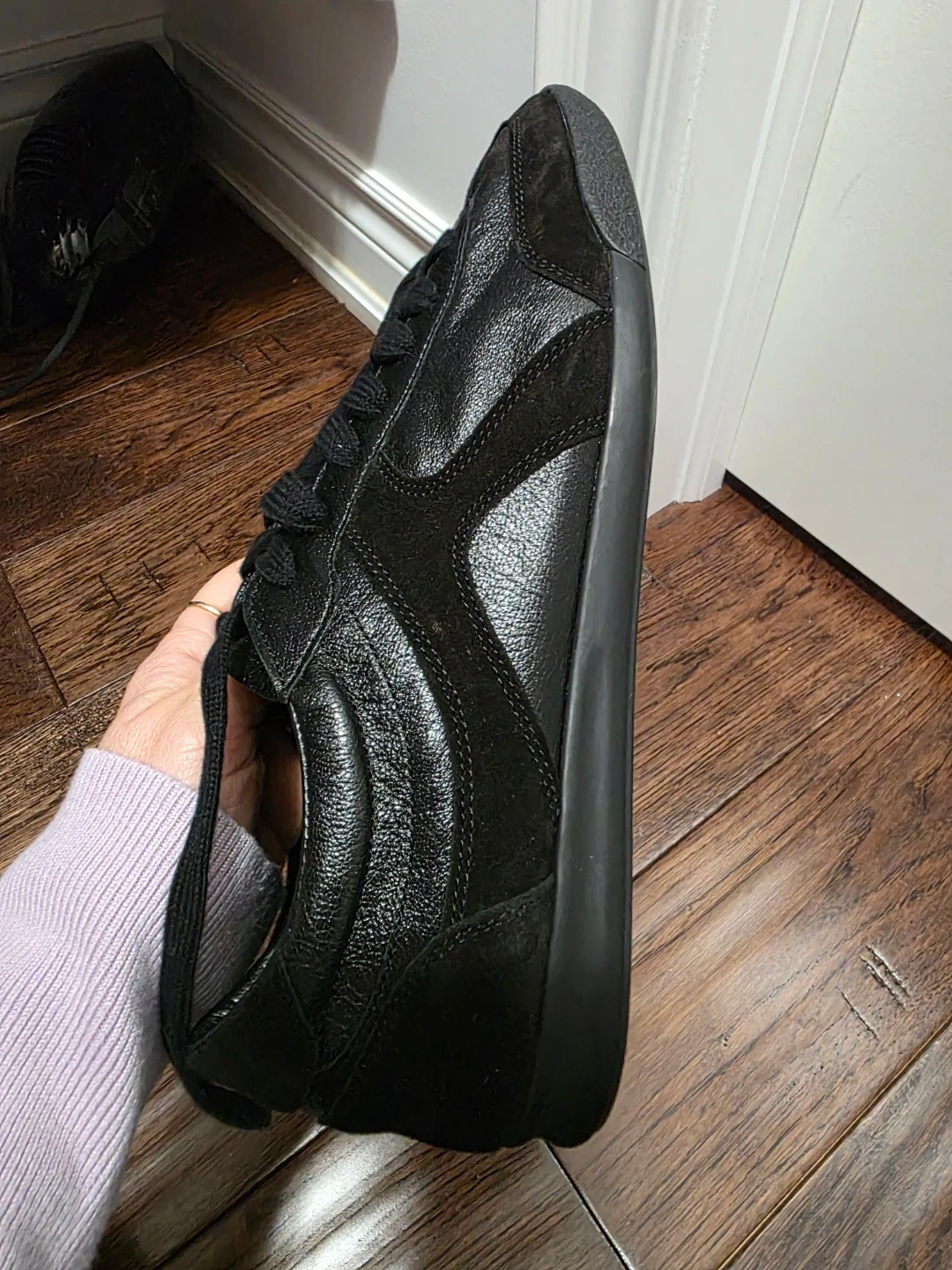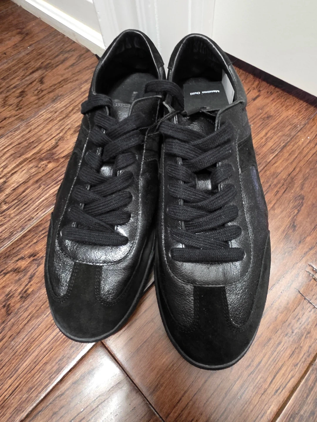 Selling a pair of Massimo Dutti sneakers in black leather. They are in new condition and a European size 42. Perfect for a casual look!