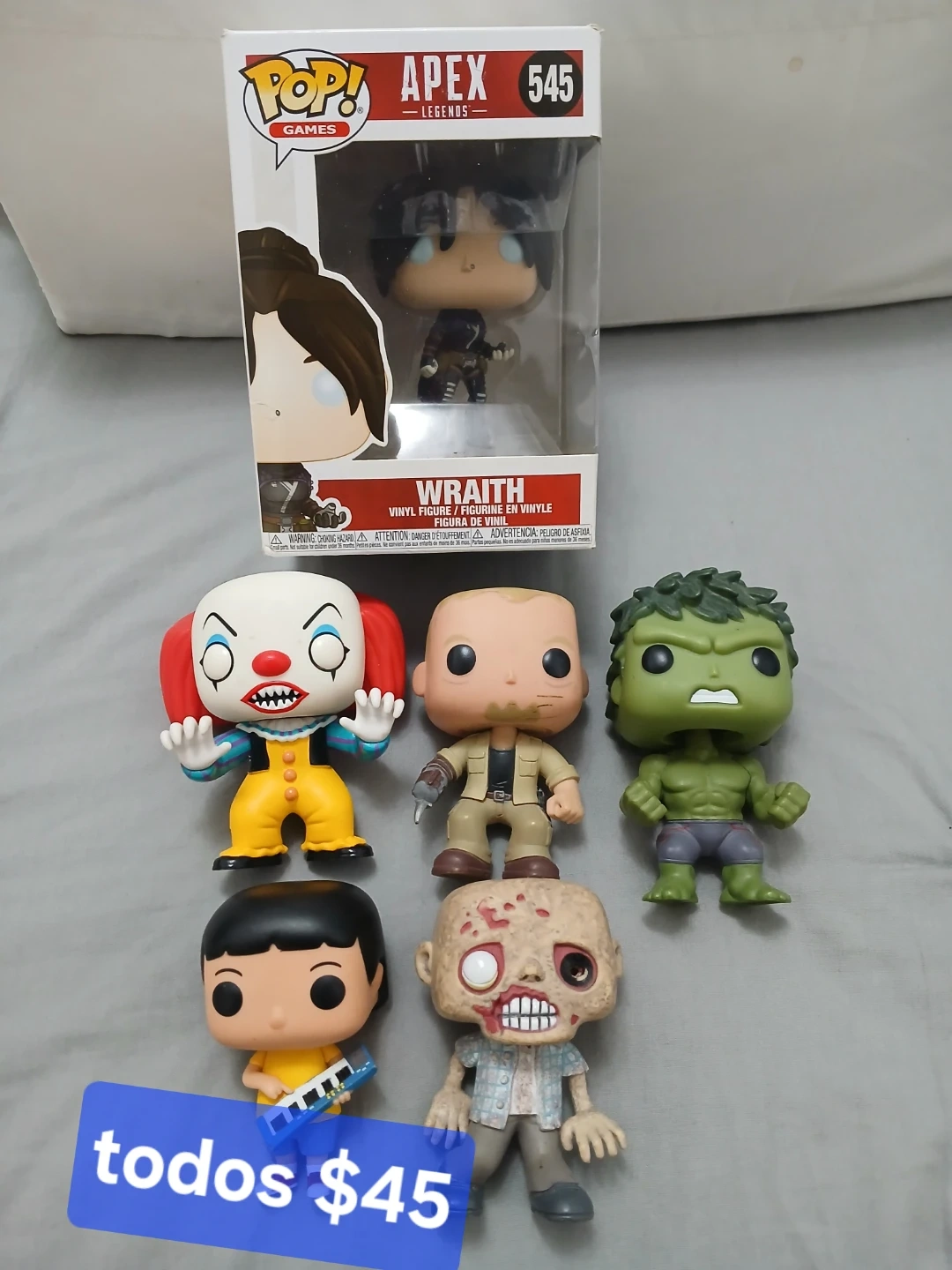 Selling a collection of Funko POP! vinyl figures. Includes Wraith from Apex Legends (number 545) and other assorted characters. All in good condition and ready for a new home!