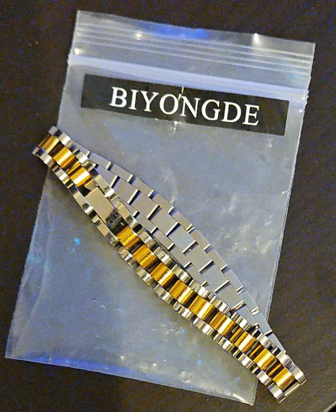 Selling a BIYONGDE watch band. It's a stylish combination of silver and gold. Perfect for adding a touch of elegance to your timepiece!