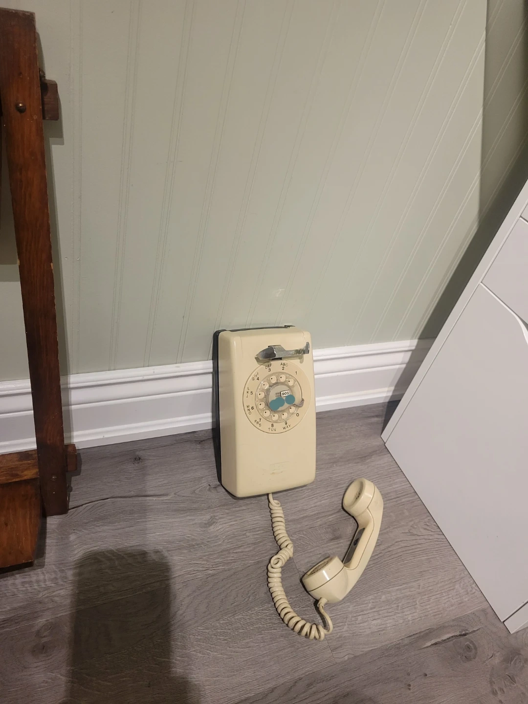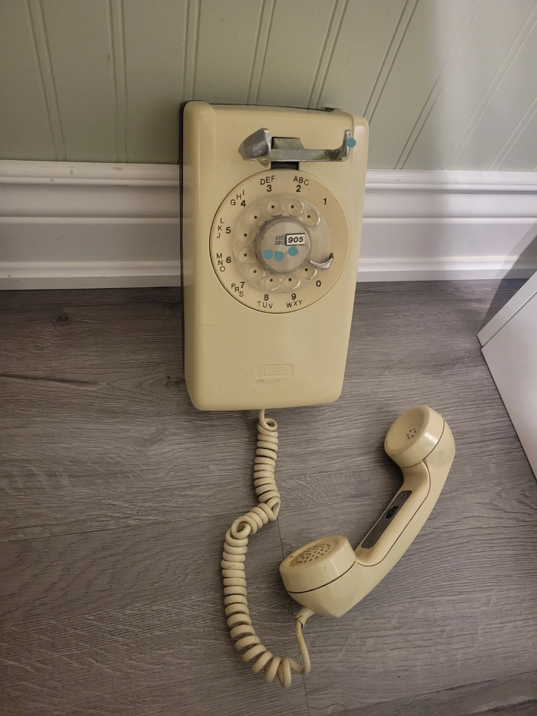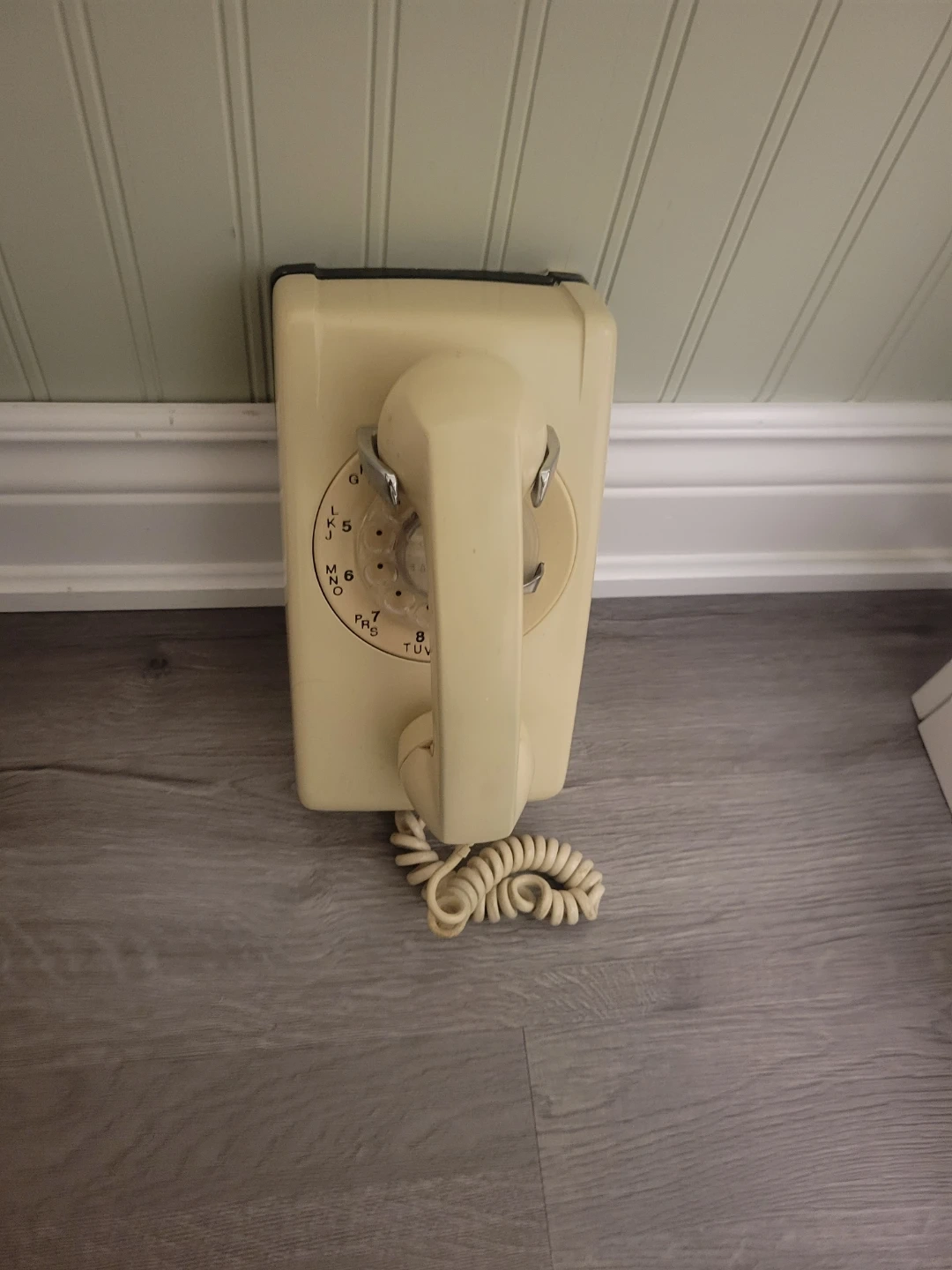 Step back in time with this vintage rotary wall phone! It's a blast from the past and still has that old-school charm. Note this item is used, showing some signs of wear and tear, which only adds to its authentic retro appeal.