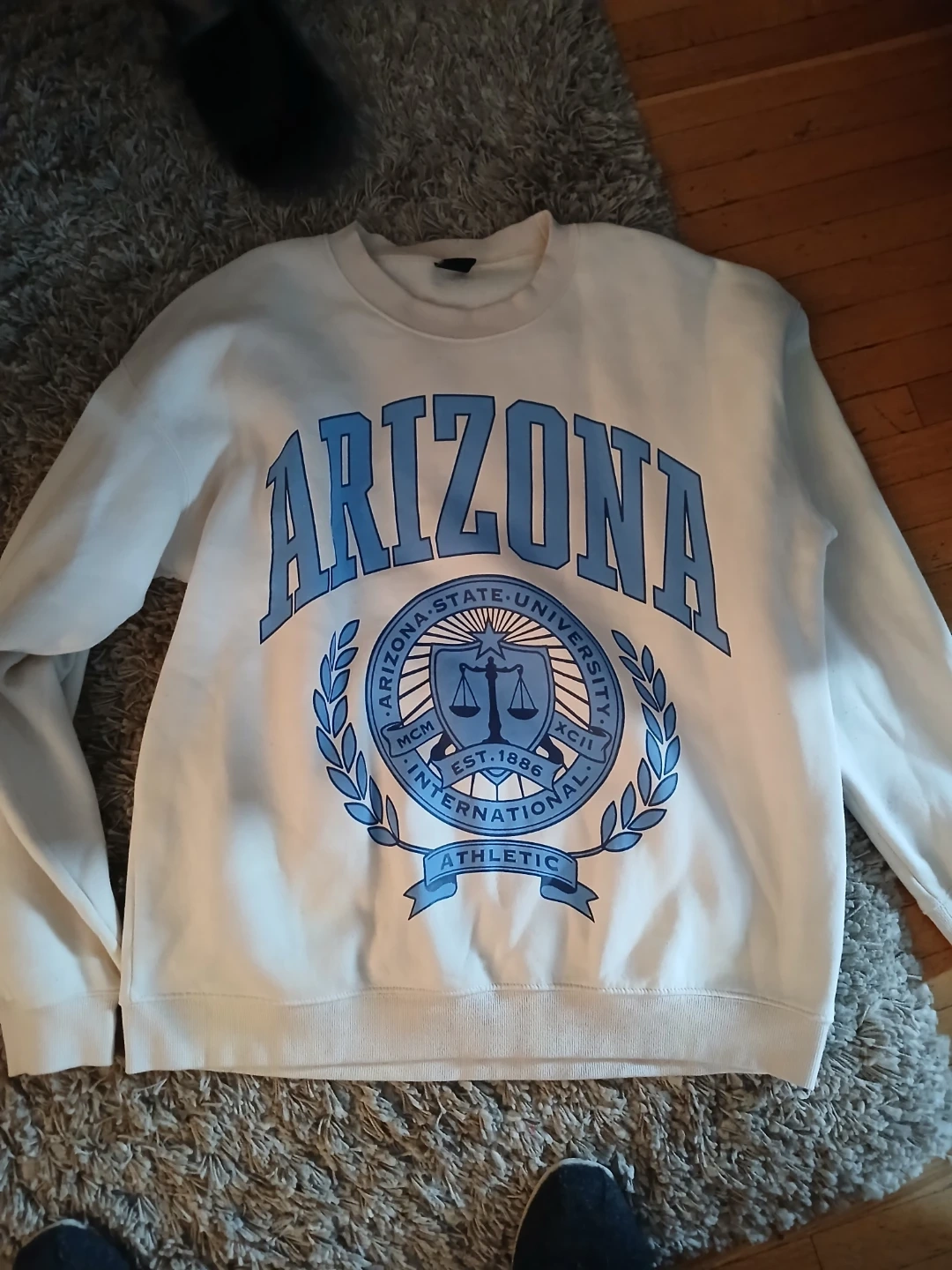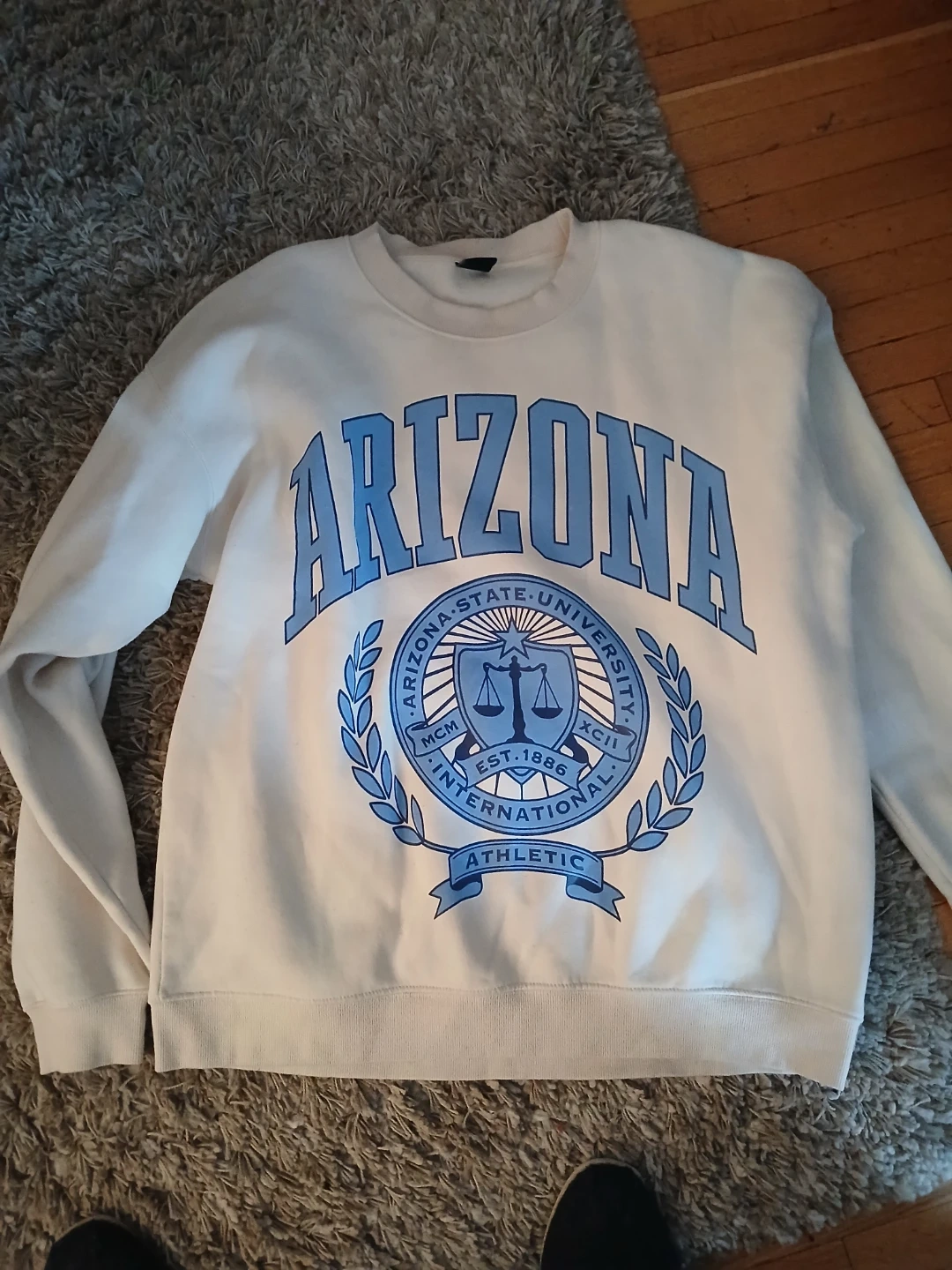 Selling a cute Arizona State University crewneck! It's a comfy white colour with a blue design. Great for showing off your school spirit or just lounging around