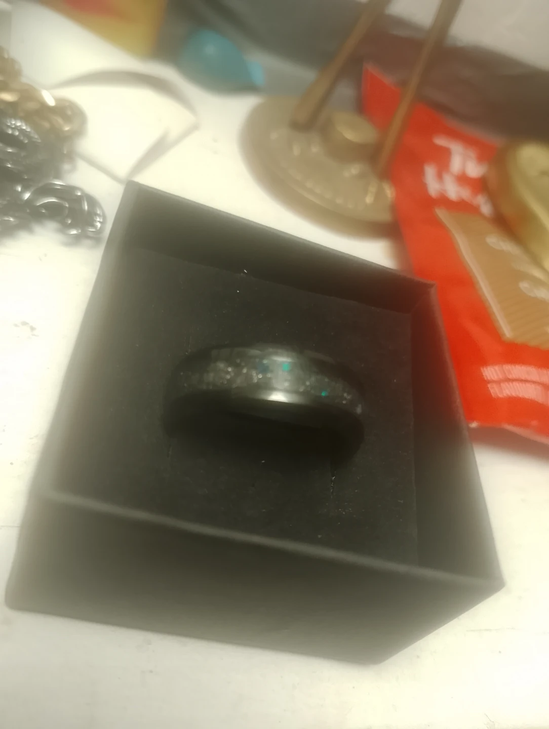 GENUINE METEORITE & OPAL HANDMADE TUNGSTEN STEEL RING