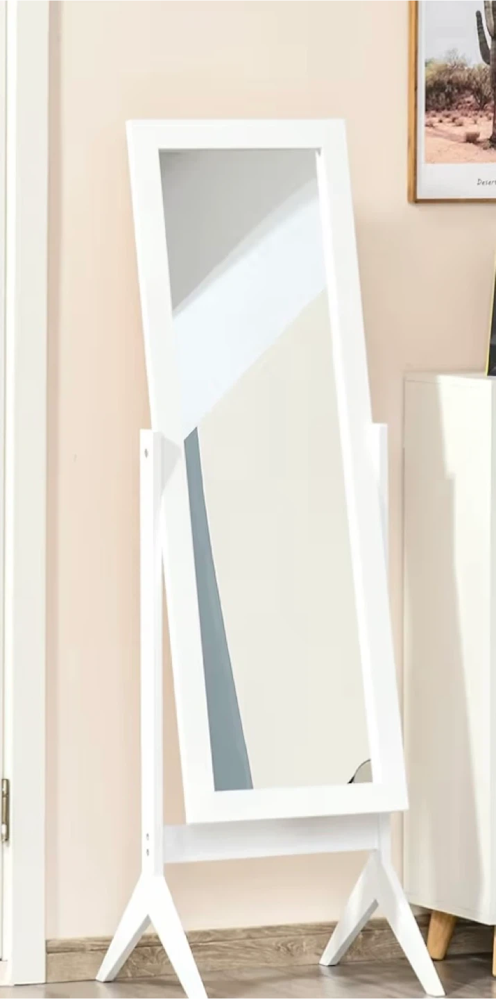 Here's a lovely standing mirror perfect for any room! It's a full-length mirror with a clean white frame.