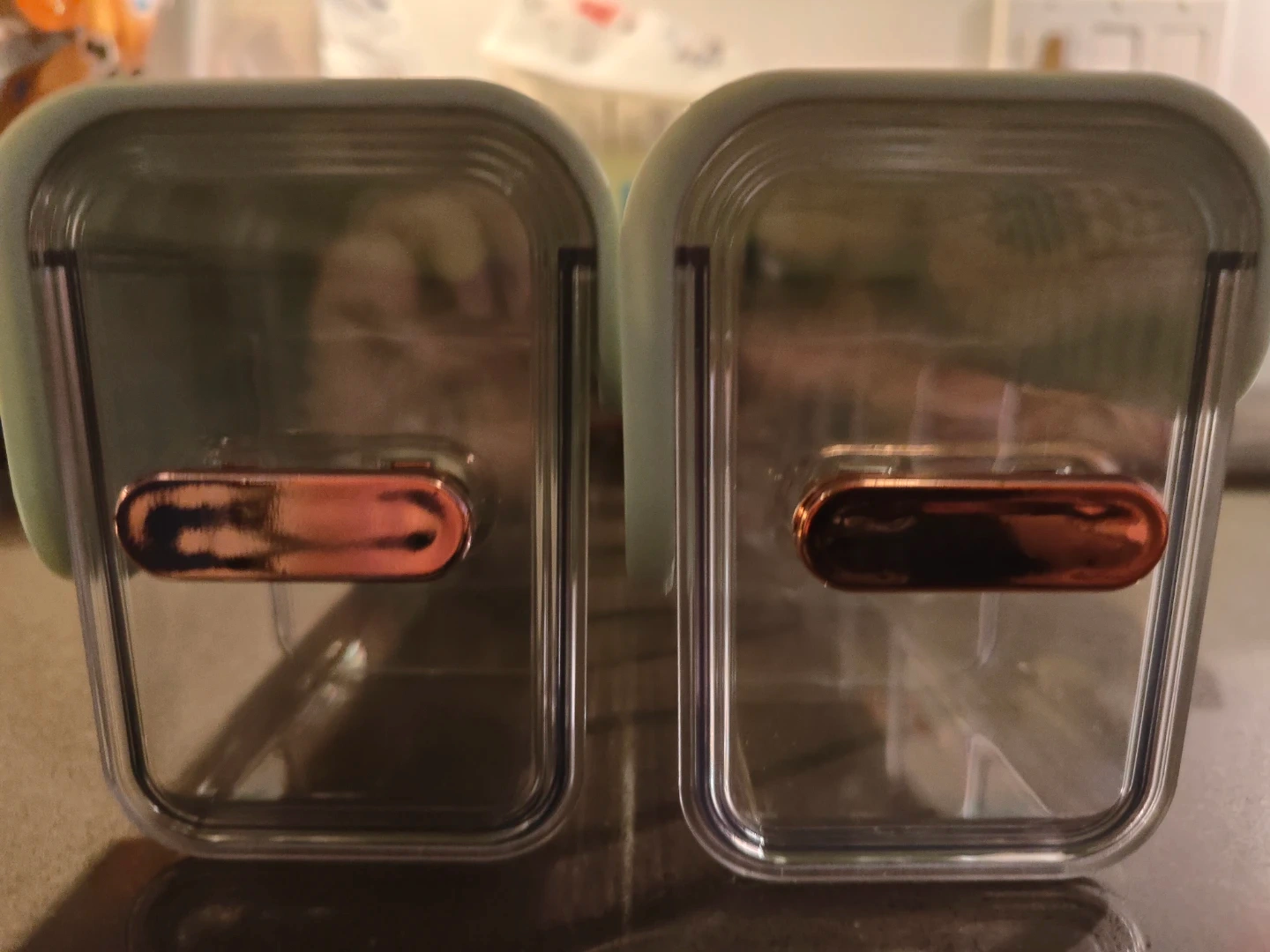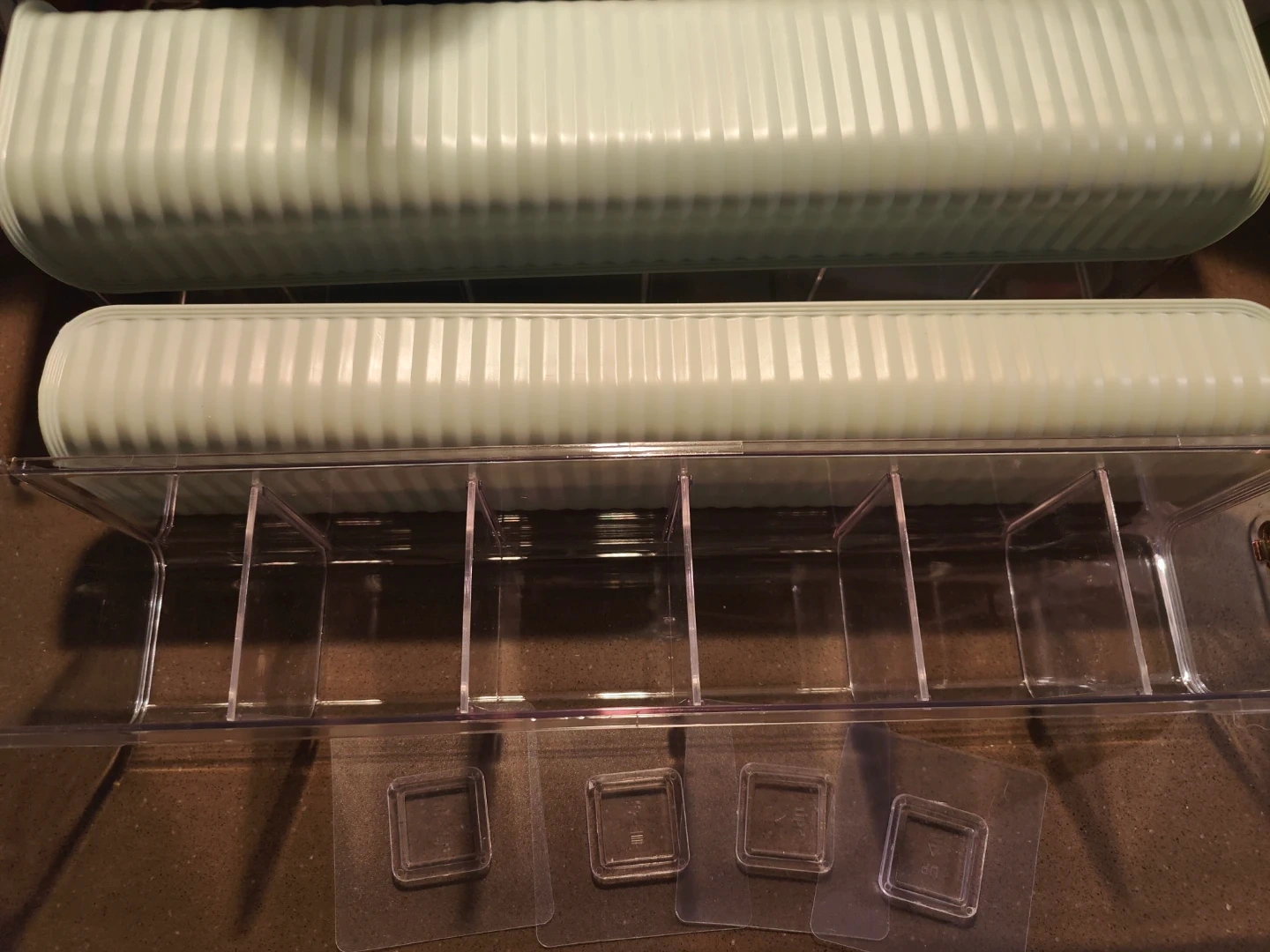 Selling a set of 2 closet storage organizers, never used. They each come with two stickers for mounting onto a wall or inside a closet door, and adjustable dividers inside. Pull the gold handle to slide open.