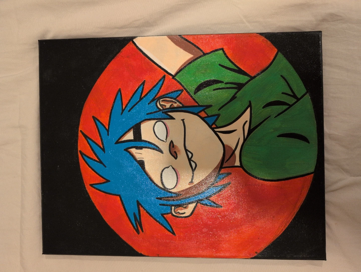 Selling a canvas painting of 2-D from the band Gorillaz! It's fan art, painted with bright colors on a black background. A unique piece for any Gorillaz fan!