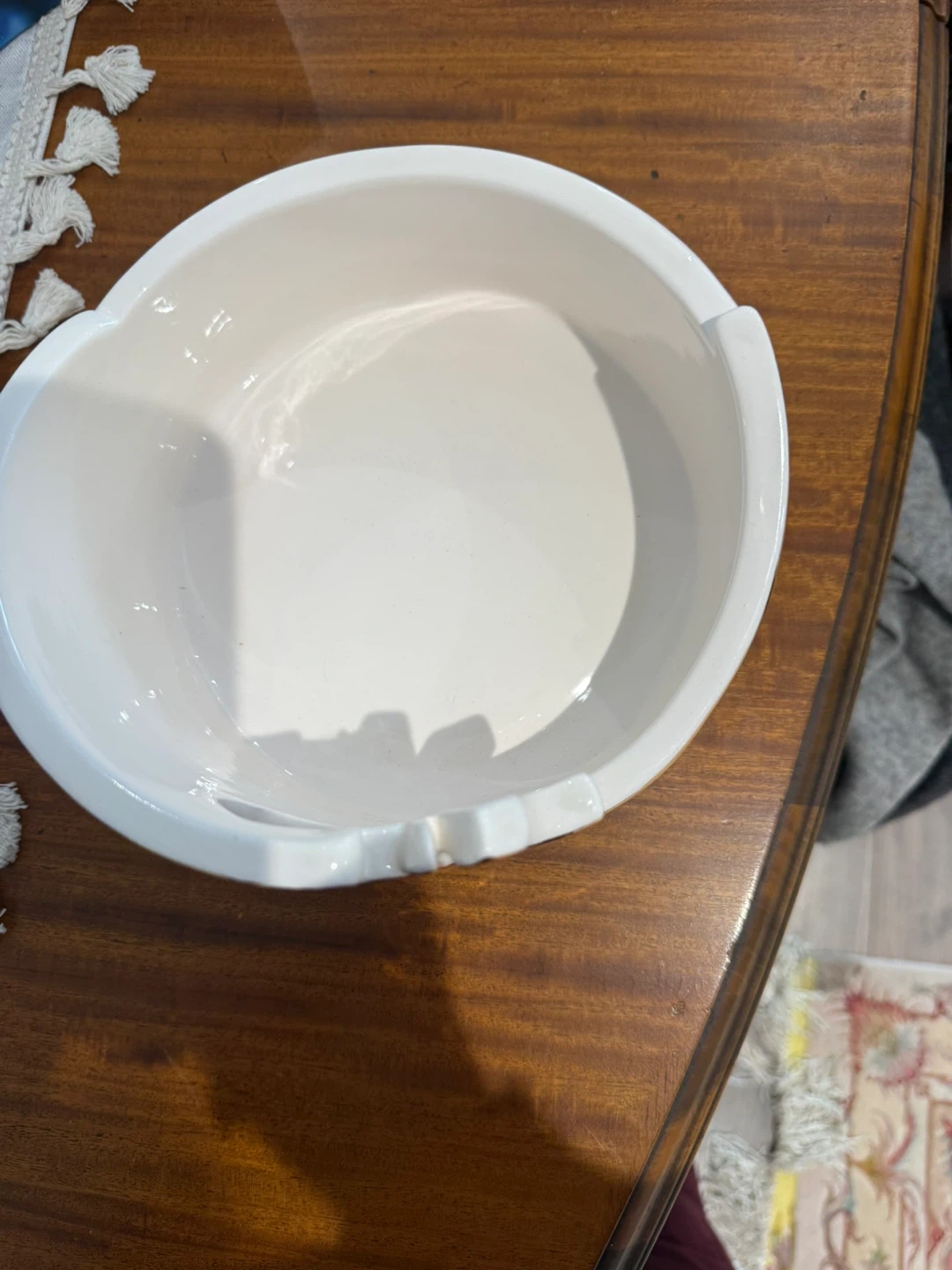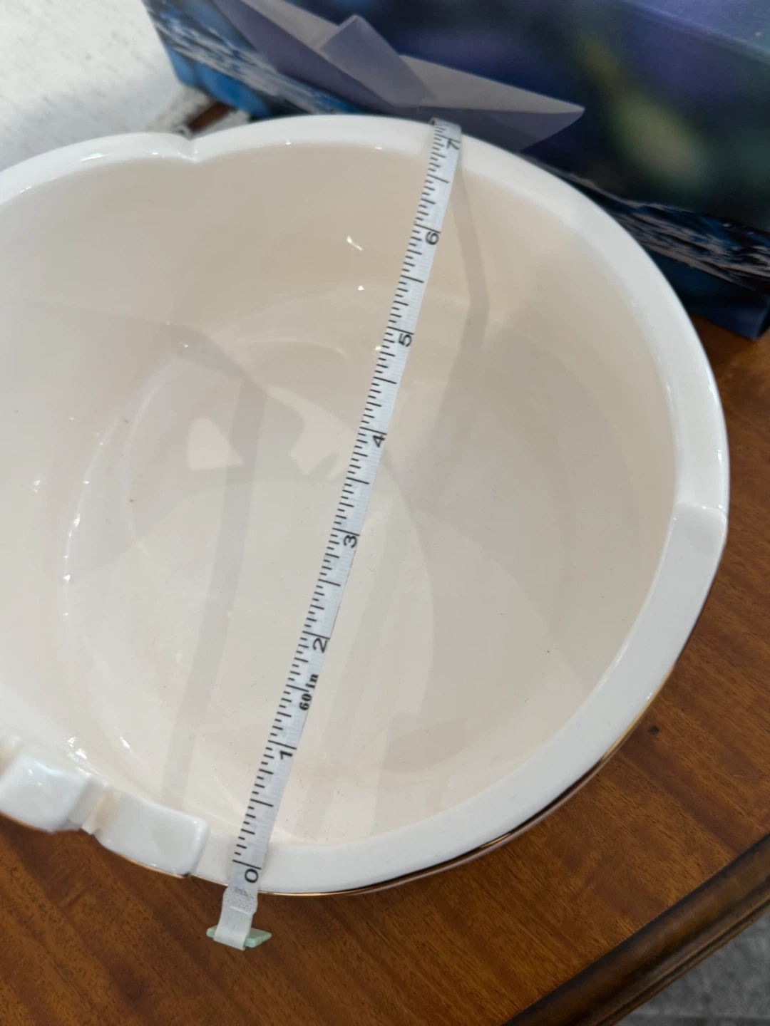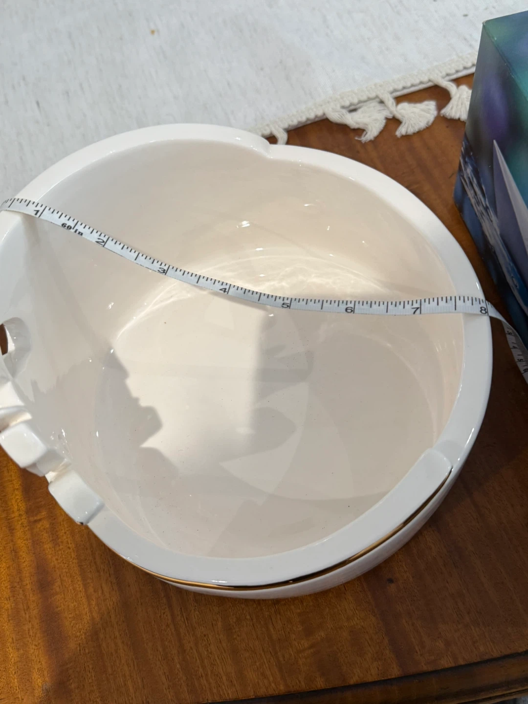 Selling a rare , one of a kind and lovely decorative Ceramic bowl . It's white with a unique gold accent design. The bowl measures approximately 8 inches in diameter, it is hand wash able and canbe used as decorative or nuts or fruit bowl. making it a nice size for a centerpiece or accent piece in your home.