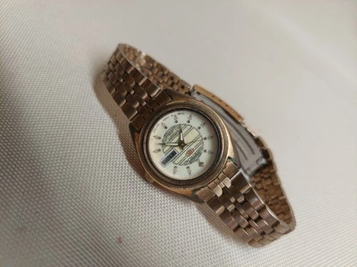 This is a genuine vintage Seiko 5 automatic mechanical watch, made in Japan. A real, self-winding timepiece — not quartz, not a fashion watch. Watch Details Brand: Seiko Model Line: Seiko 5 Movement: Automatic / Mechanical (self-winding, no battery) Functions: Day & Date Country of Manufacture: Japan Case: Gold-tone plated (not solid gold) Bracelet: Original Seiko bracelet (important to collectors) Running Condition ✔ Runs well and has been running continuously for several days ✔ Second hand sweeps smoothly ✔ Starts easily when worn or gently shaken ✔ Day/date function present Accuracy has not been formally tested, and service history is unknown — typical for a vintage mechanical watch. Cosmetic Condition (Honest Vintage Wear) This watch is in fair vintage condition with visible wear consistent with age. Positives Dial is intact and legible Hands and indices intact Day/date window clean Original Seiko bracelet still attached Wear / Flaws Noticeable plating wear and brassing Corrosion visible around case edges Bracelet shows age and stretch Crystal has scratches Please review all photos carefully — they form part of the description. Important Notes Vintage mechanical watch Not serviced by me No polishing or modifications done Sold as-is, as found Perfect for collectors, Seiko enthusiasts, or anyone wanting a true vintage automatic watch with character.