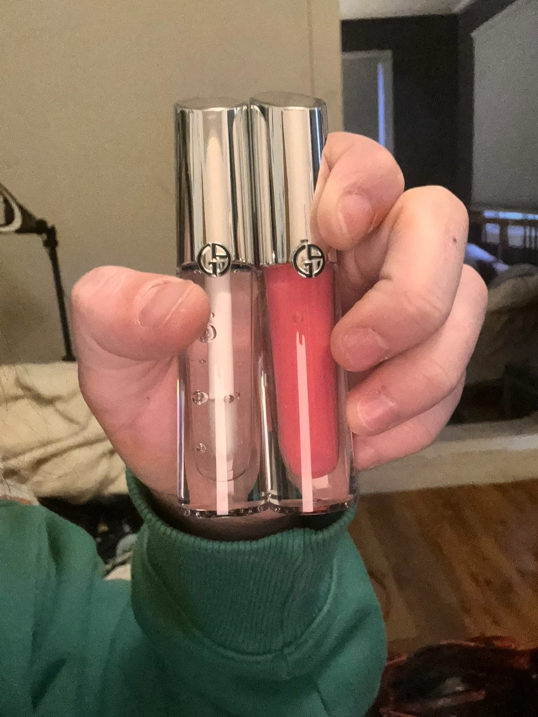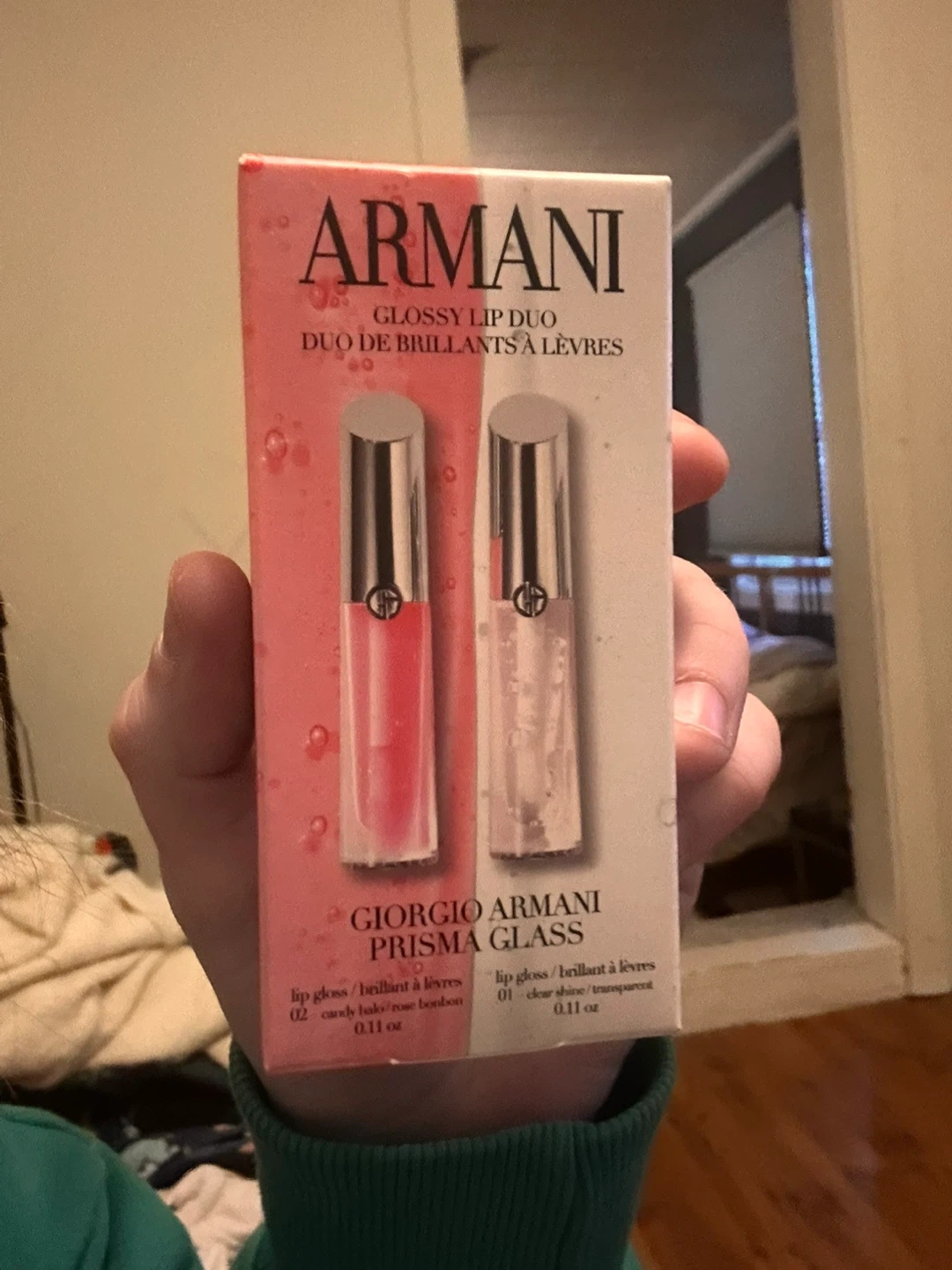 Selling a brand new Armani Glossy Lip Duo! It includes two lip glosses: 02 Candy Jade/Rose Bonbon and 01 Clear Shine/Transparent. Each gloss is 0.11 oz