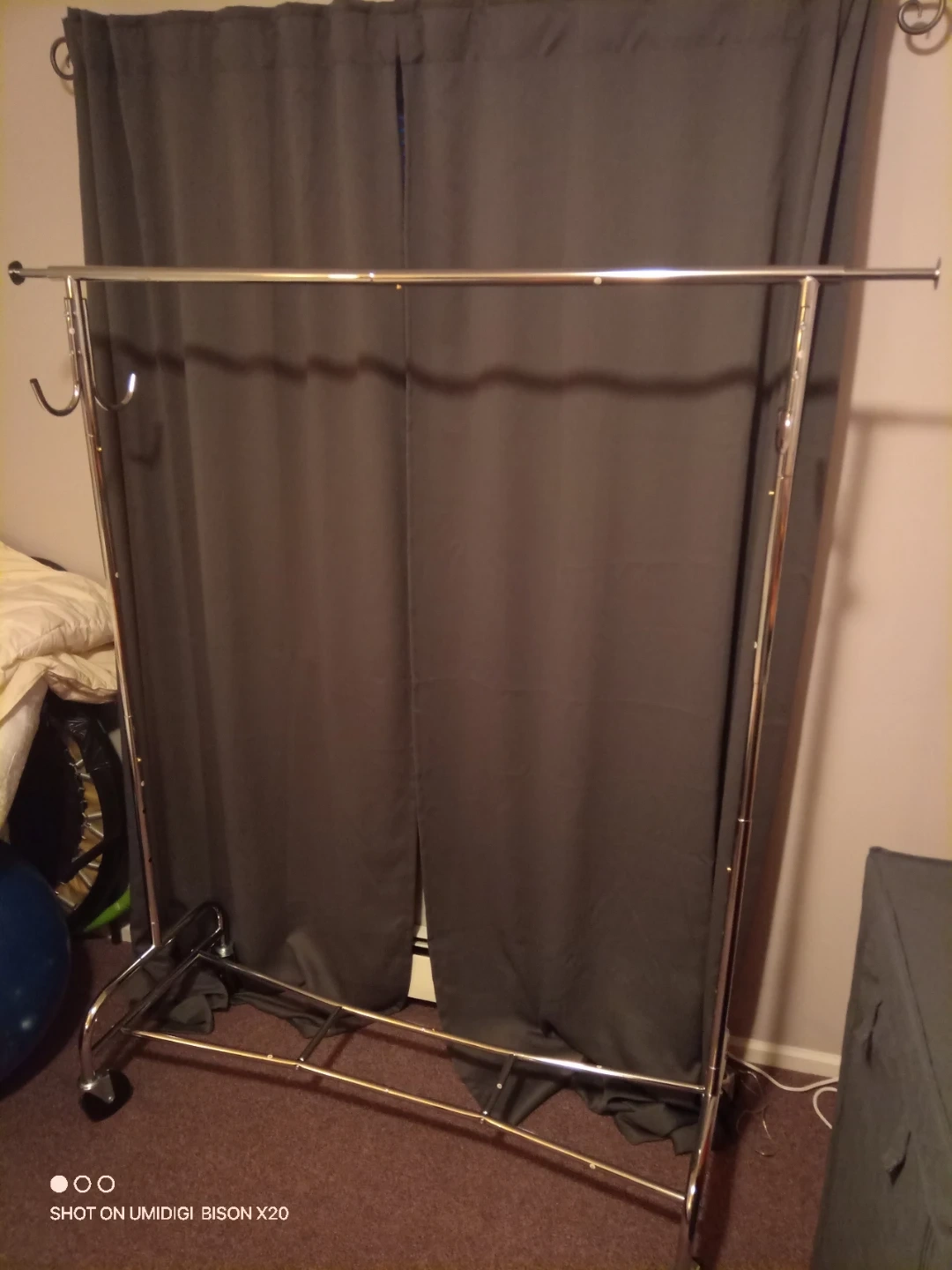 Selling a chrome clothes rack with wheels! It's in great shape and ready to hold your clothes. Perfect for extra storage or organizing your wardrobe.