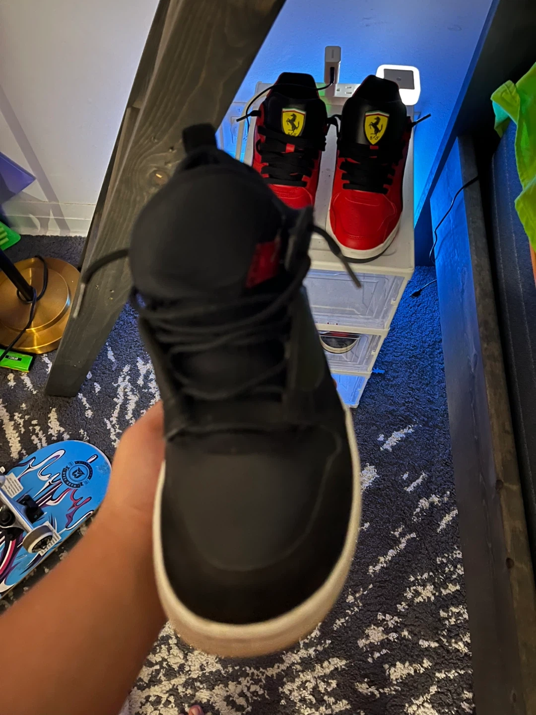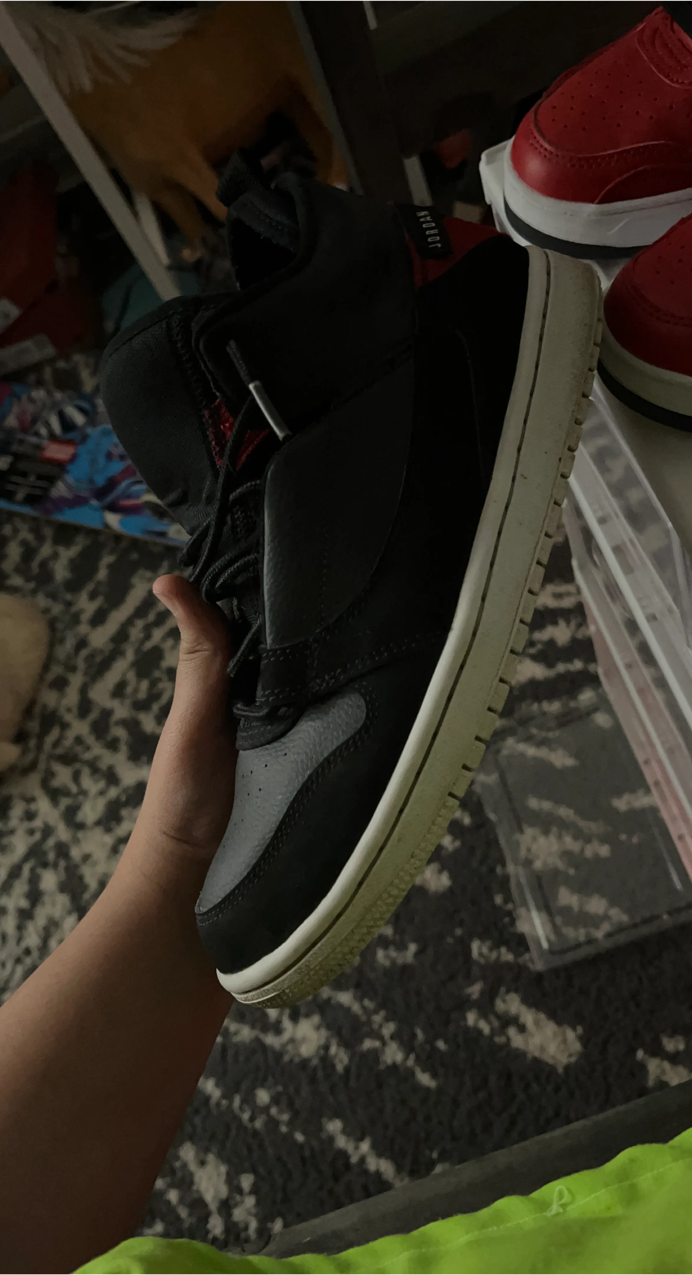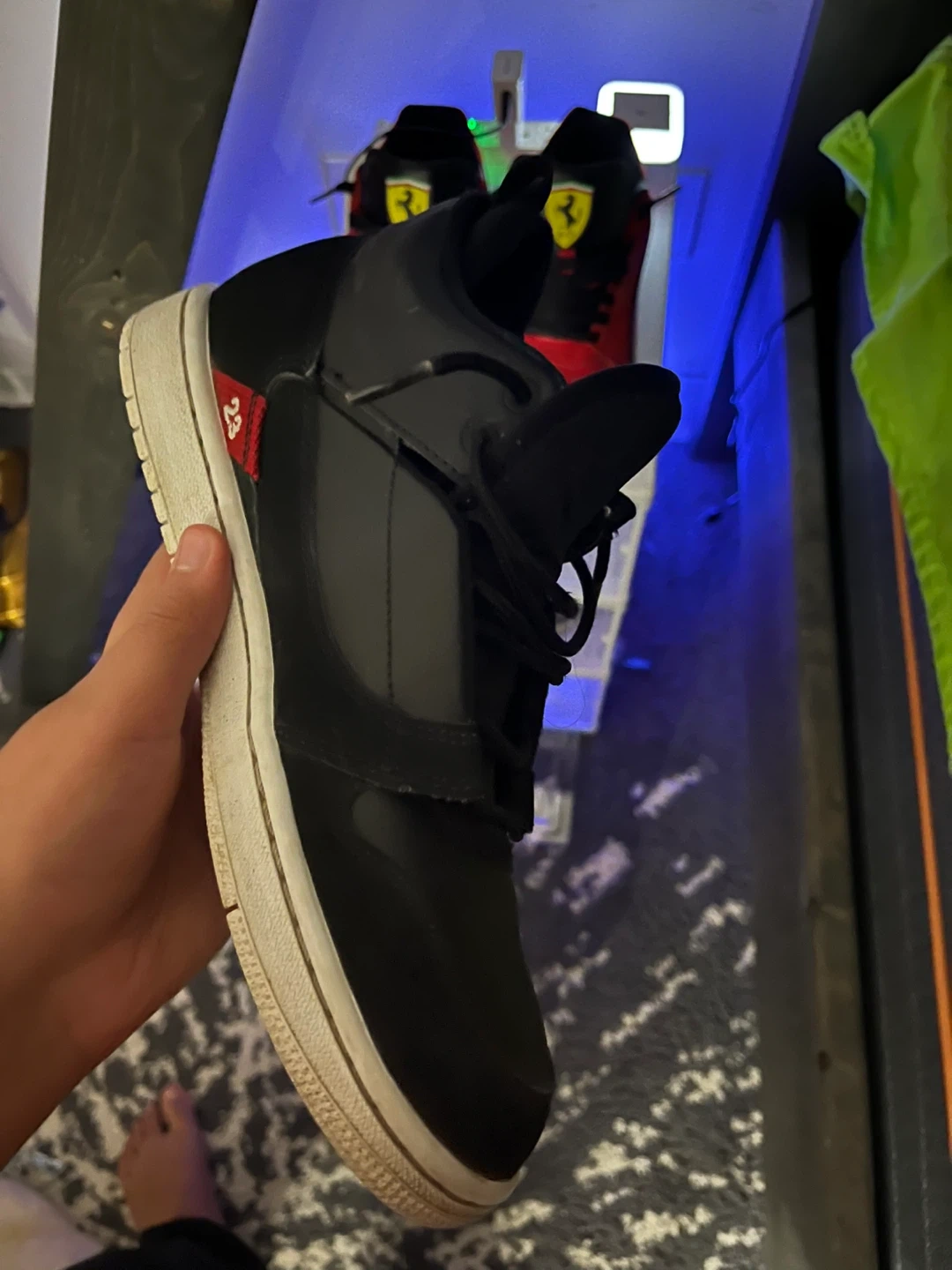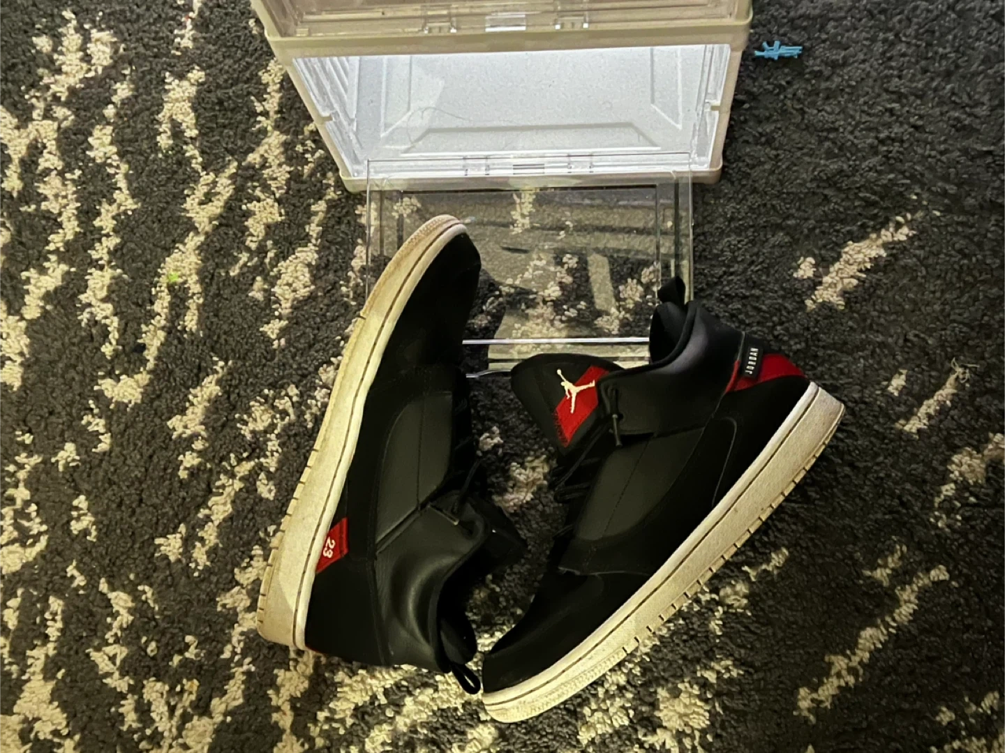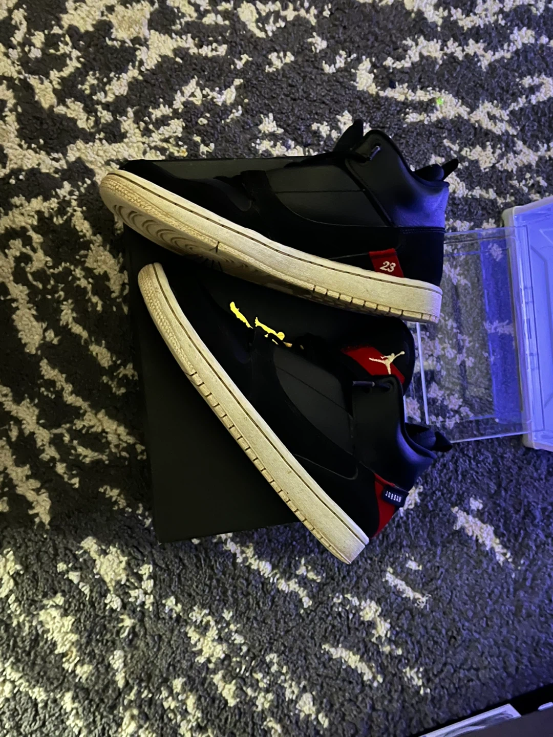 Selling a pair of Jordan high top sneakers in black. They show some signs of wear, but still have lots of life left!