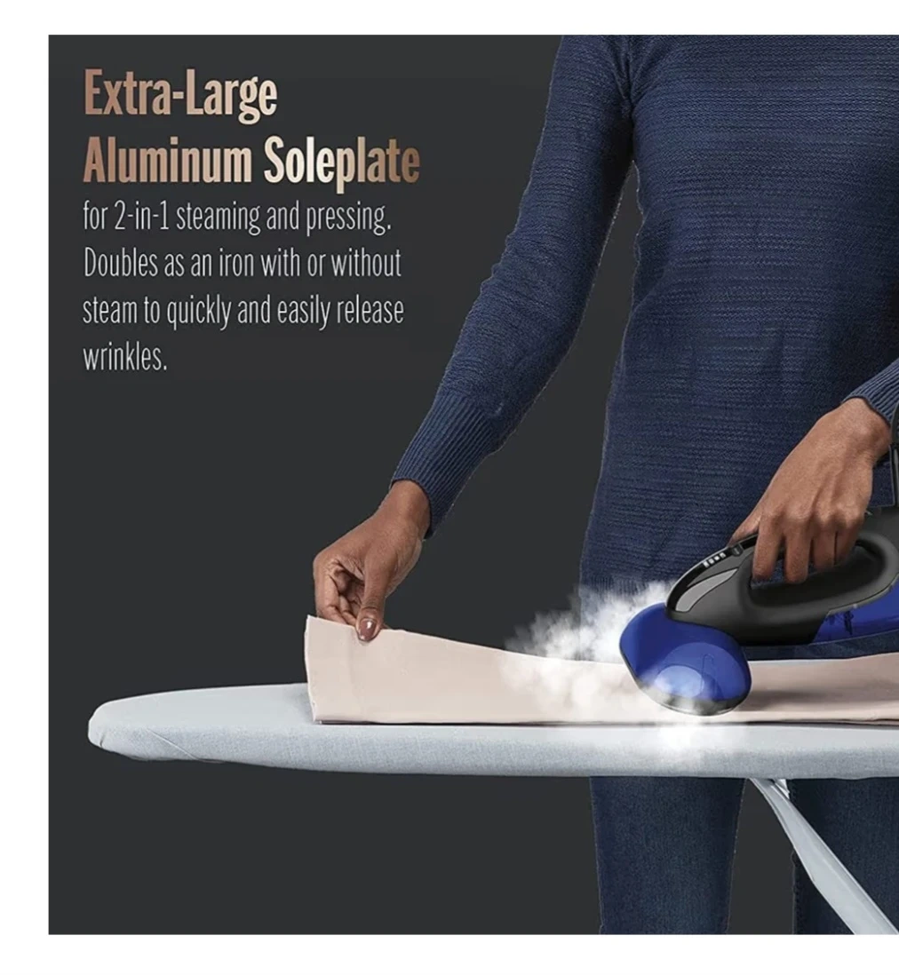 - Extra-Large Aluminum Soleplate for 2-in-1 steaming and pressing