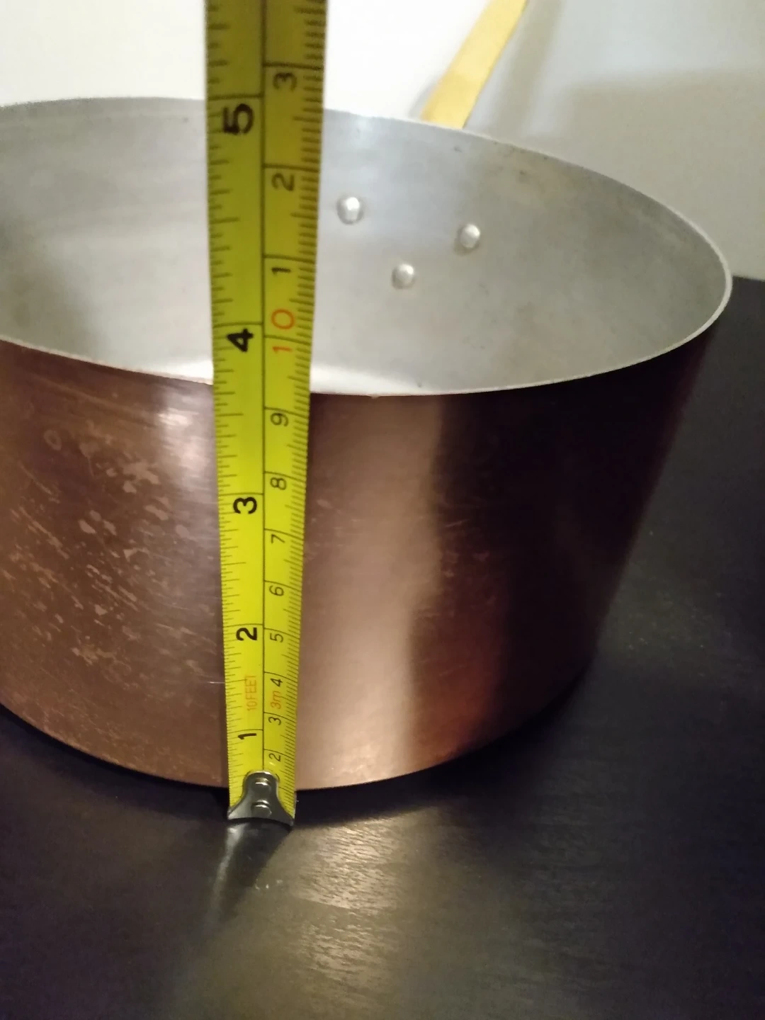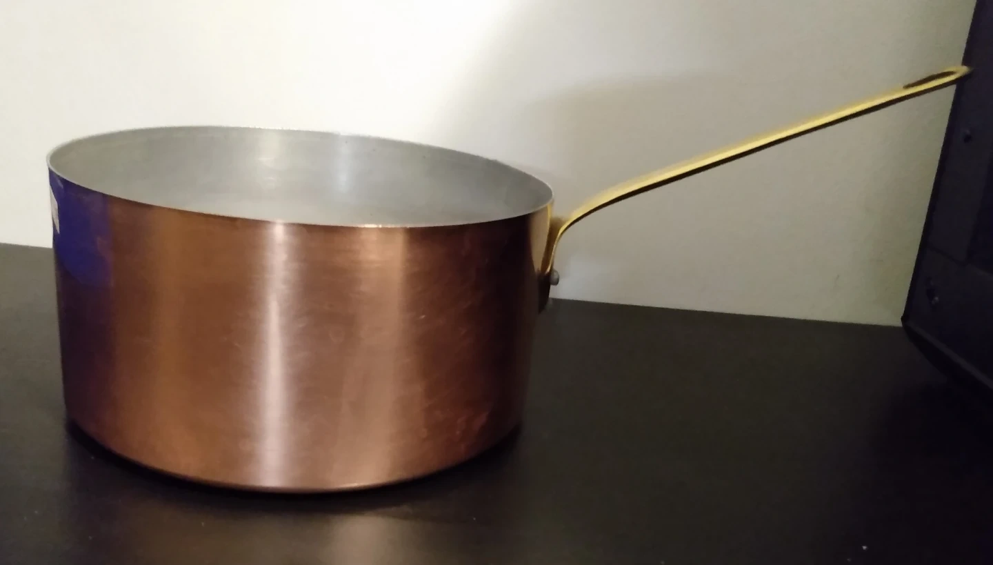 Buy & SellVintage French copper potVintage French copper pot$20Tournus brand. Made in France. Copper outer, aluminum inner, brass handle. 7" diameter, 3 5/8" height.ConditionLike newWHERE TO MEETThe Rec RoomView MapSELLERWellaDowntown Toronto181 review3 chats·4 favorites·63 viewsSEND CHAT TO SELLERHi Wella! I’m interested in your listing.Hi Wella! I’m interested in your listing.Get the Karrot app to chatSign In to chat