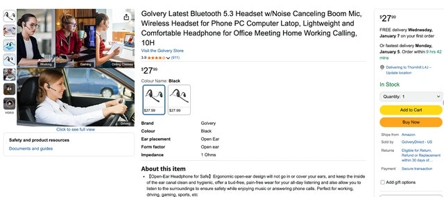 Why It’s Worth Buying: If you’re looking for a comfortable, lightweight open-ear headset with a proper boom mic, this model stands out versus basic earbuds—especially for calls, work, and long wear. A solid alternative to buying new at full retail price.