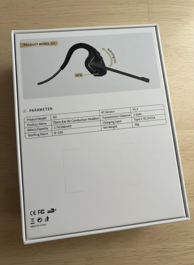 This is the G2 Open-Ear Wireless Bluetooth Headset (Black), featuring an ergonomic open-ear design, Bluetooth 5.3, and a 270° adjustable ENC noise-canceling boom microphone. Designed for all-day comfort and clear voice calls while keeping you aware of your surroundings. Ideal for office work, online meetings, driving, gaming, and long listening sessions where comfort and call clarity matter.