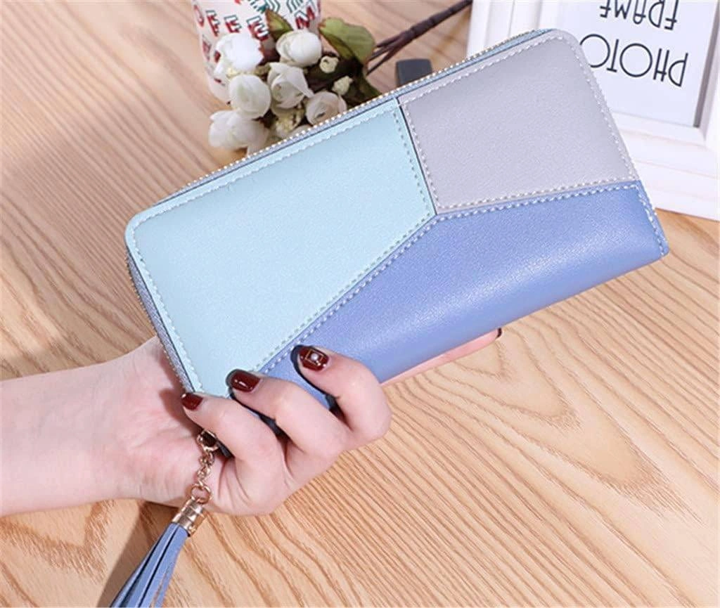 Selling a cute Brand new women's clutch wallet in a lovely blue and grey colour combination! It's a zipper coin purse, perfect for holding your essentials. The wallet features exquisite tassel accessories, making it both beautiful and practical for daily use