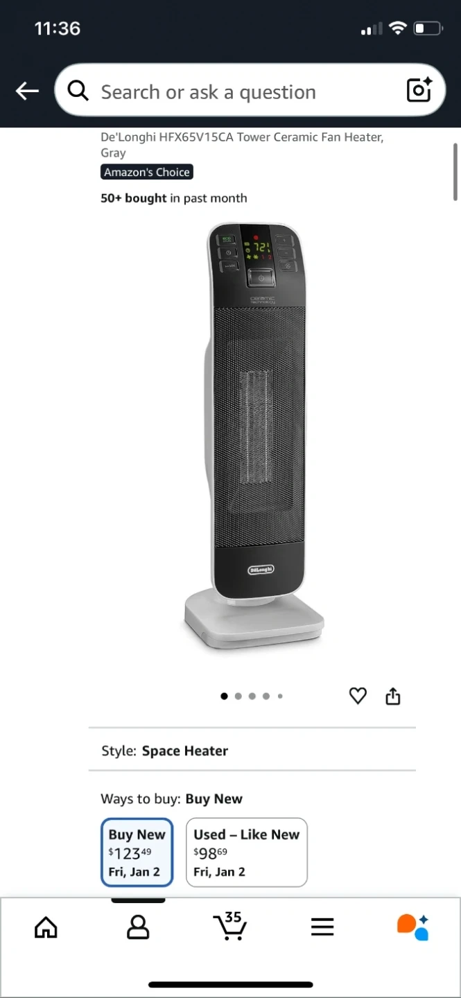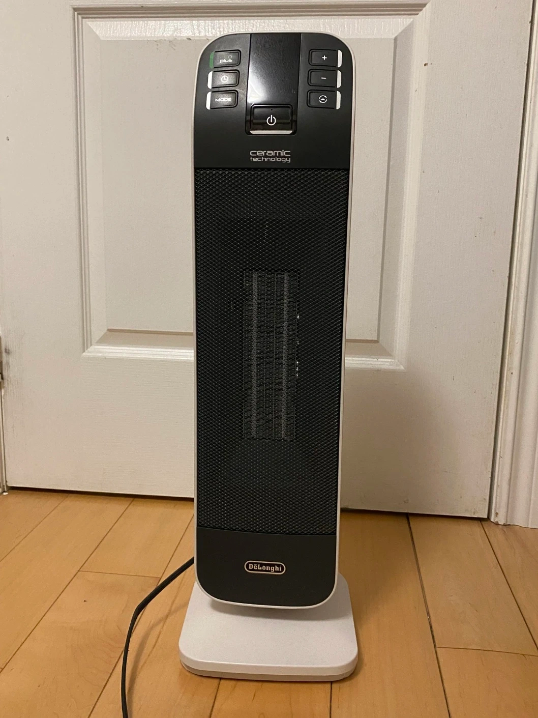 Selling a De'Longhi HFX65V15CA tower ceramic fan heater in gray. It's a space heater perfect for keeping you warm during the colder months.