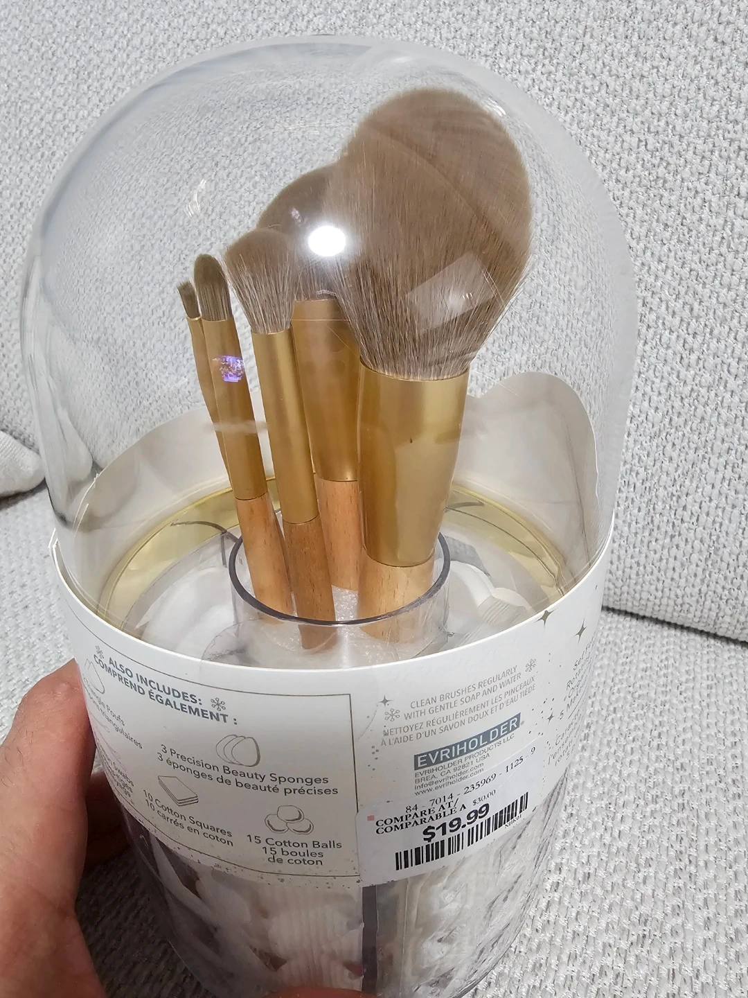 Selling a 5-piece Evriholder Tinsel Twirl brush set! It includes precision beauty sponges, cotton squares, and cotton balls. The set is in great condition and comes with the original packaging. Brand new, unused.