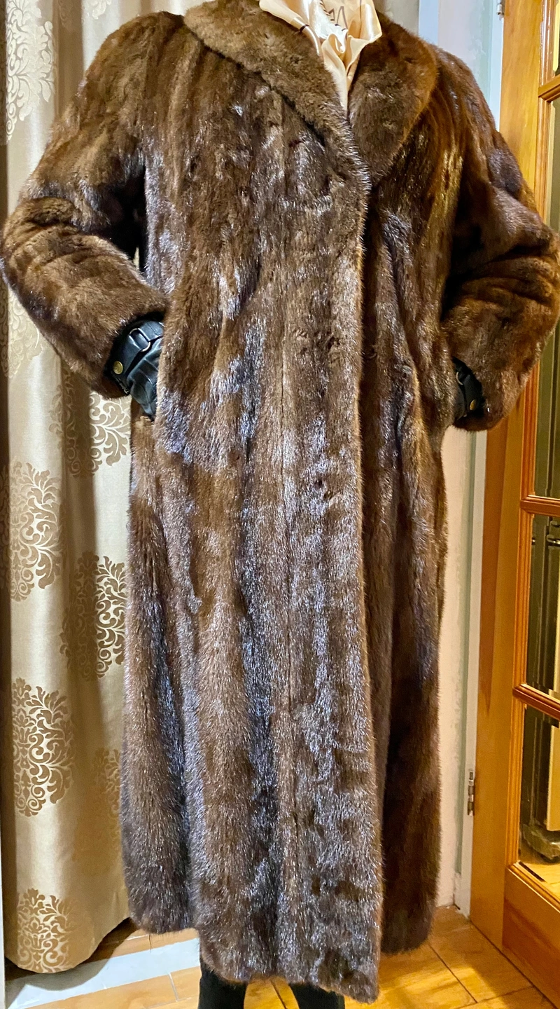 Authentic Real Golden Dark Brown Mink Fur Coat Size L / XL