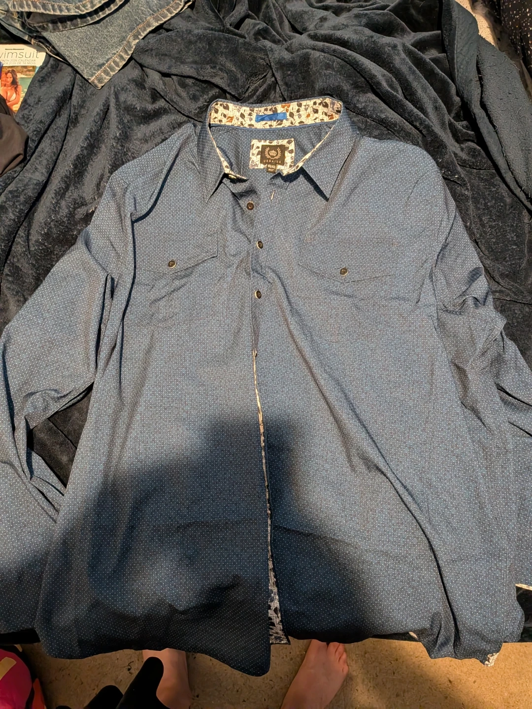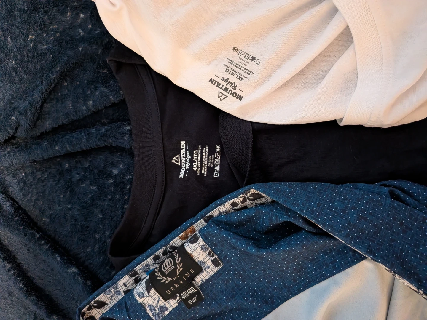 Selling a few shirts that don't fit me. There's a Mountain Ridge black t-shirt and a white t-shirt, both size 4XL/4XG. Also, there's a blue patterned button-up shirt from Urbane, size 4XG/4G/4GR. These shirts are brand new got them for Christmas but they did not fit me the person that gave it to me knows I'm selling them so it's okay