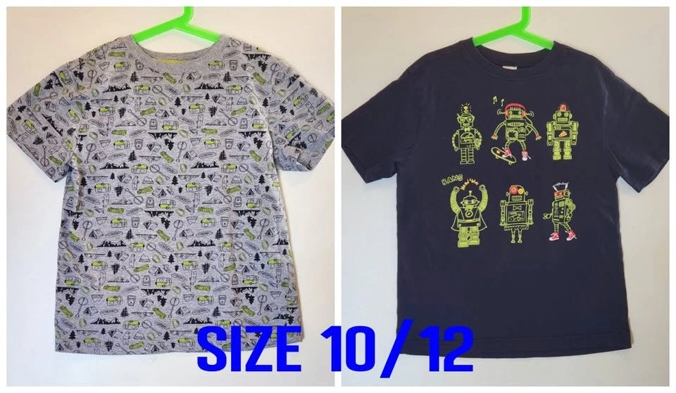 All items are in good to excellent used condition. A few items are Crazy 8 (US only sister company of Gymboree). No rips, tears, or stains. Some items have never been worn. Note that most items with graphics are embroidered/applique. Very few are just vinyl printed (Crazy 8). These hold up much better through multiple washes.