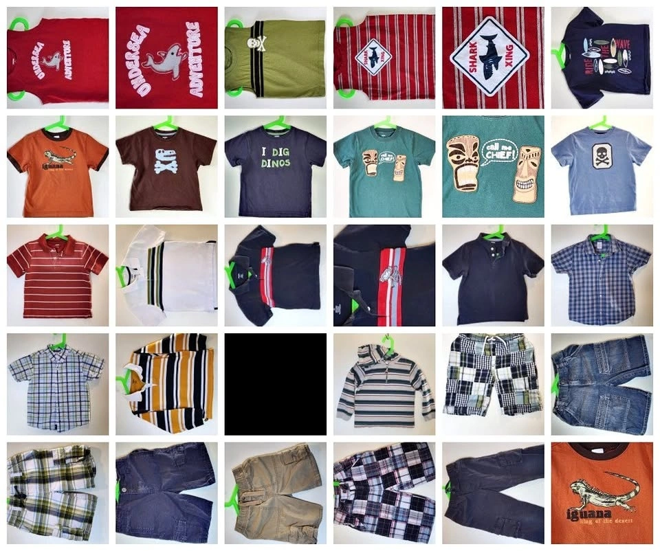 All items are in good to excellent used condition. A few items are Crazy 8 (US only sister company of Gymboree). No rips, tears, or stains. Some items have never been worn. Note that most items with graphics are embroidered/applique. Very few are just vinyl printed (Crazy 8). These hold up much better through multiple washes.