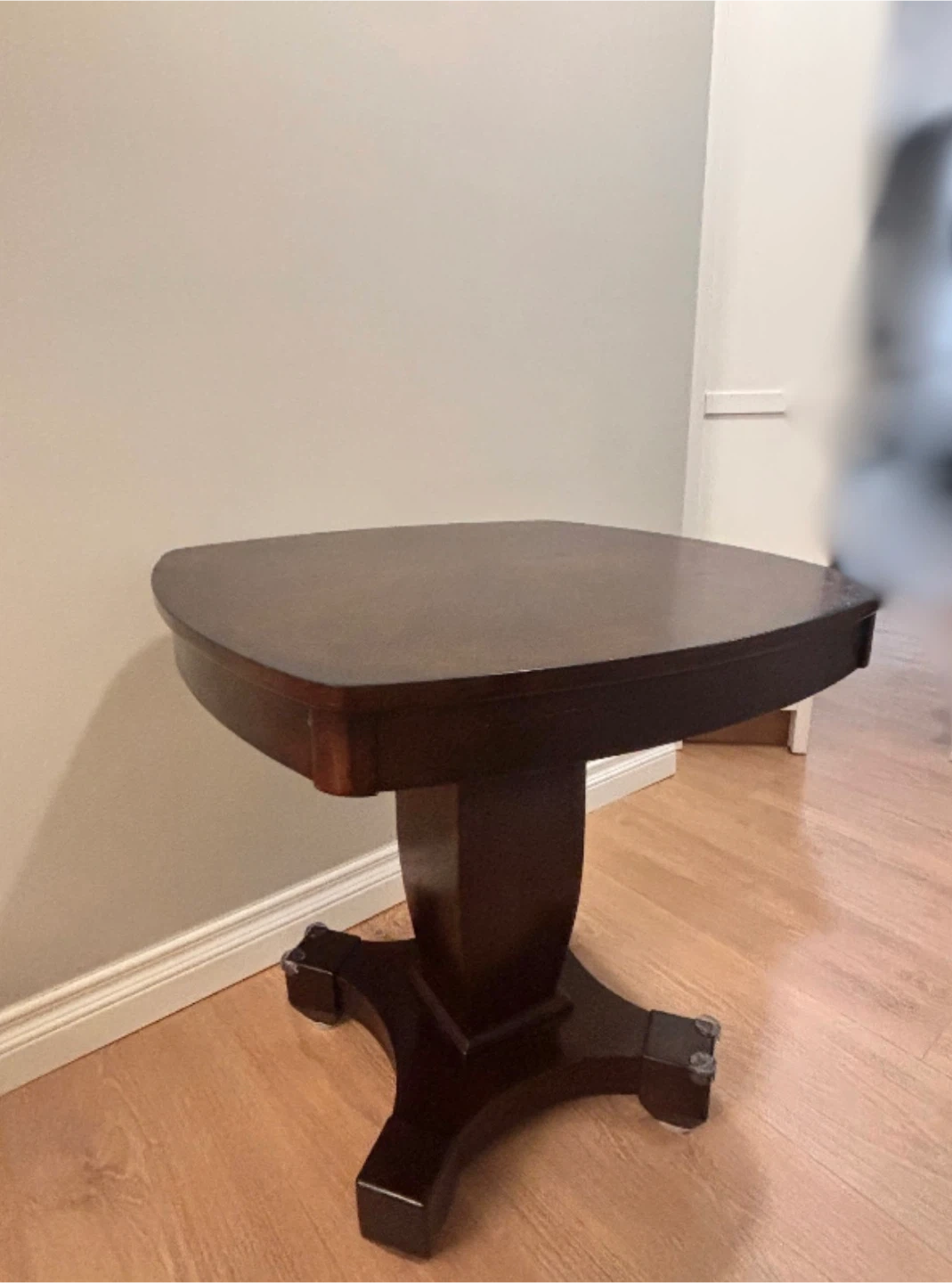 Selling a lovely solid dark wood accent table! It would look great in any living room or bedroom. There are some minor scratches on the top surface, but otherwise it's in great shape!