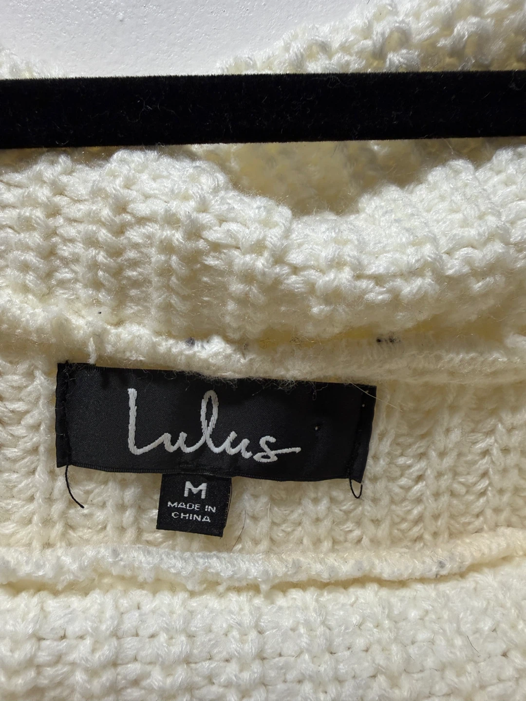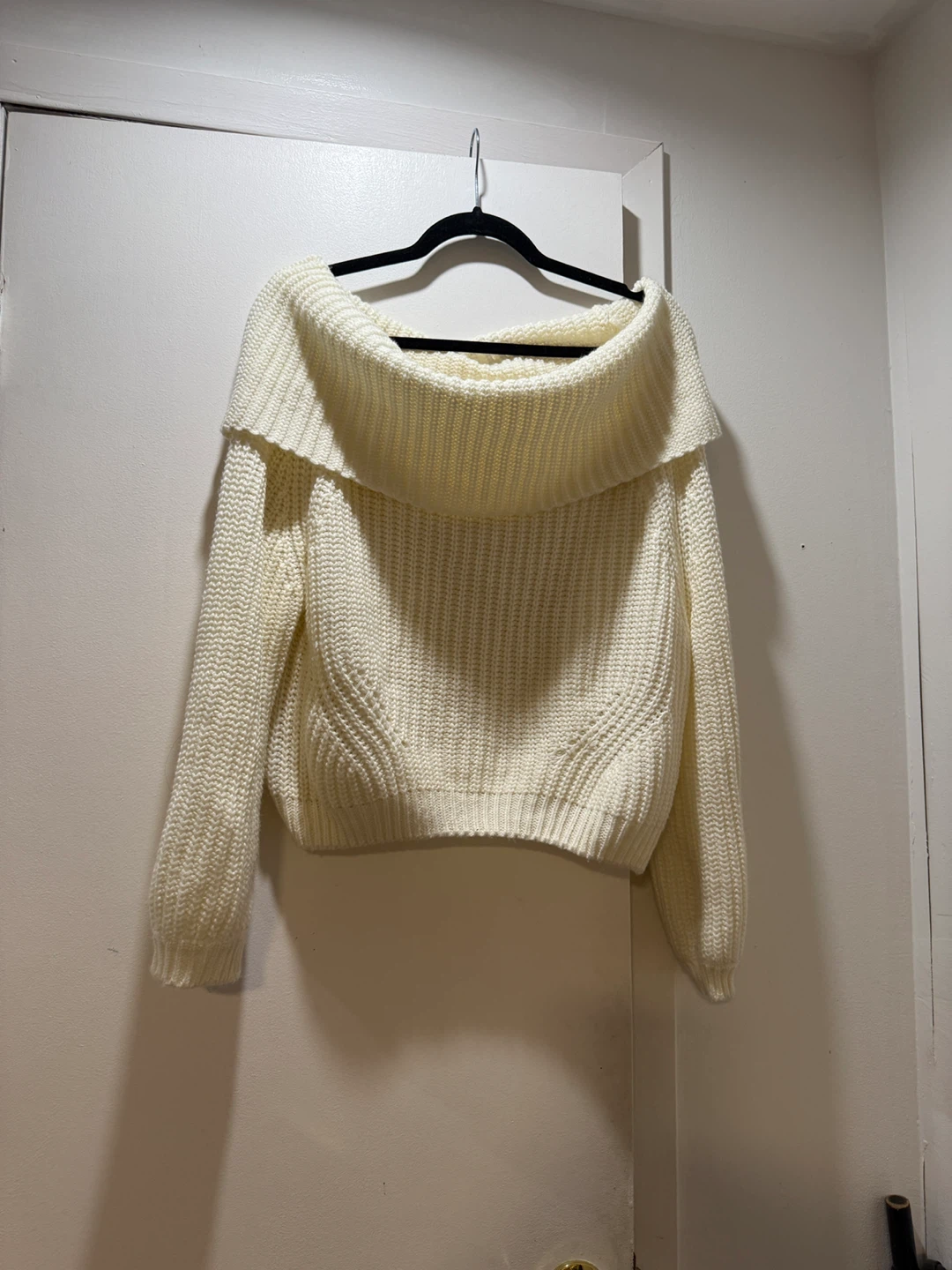 Selling a lovely cream-colored, off-the-shoulder sweater from Lulus! It's a size medium and in great condition. This sweater is perfect for a cozy and stylish look. Feel free to reach out if you're interested!