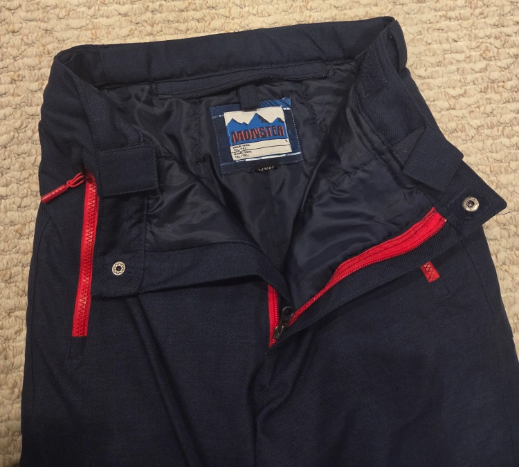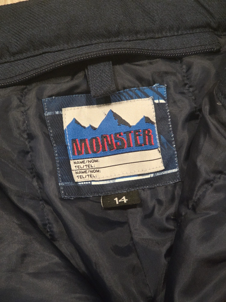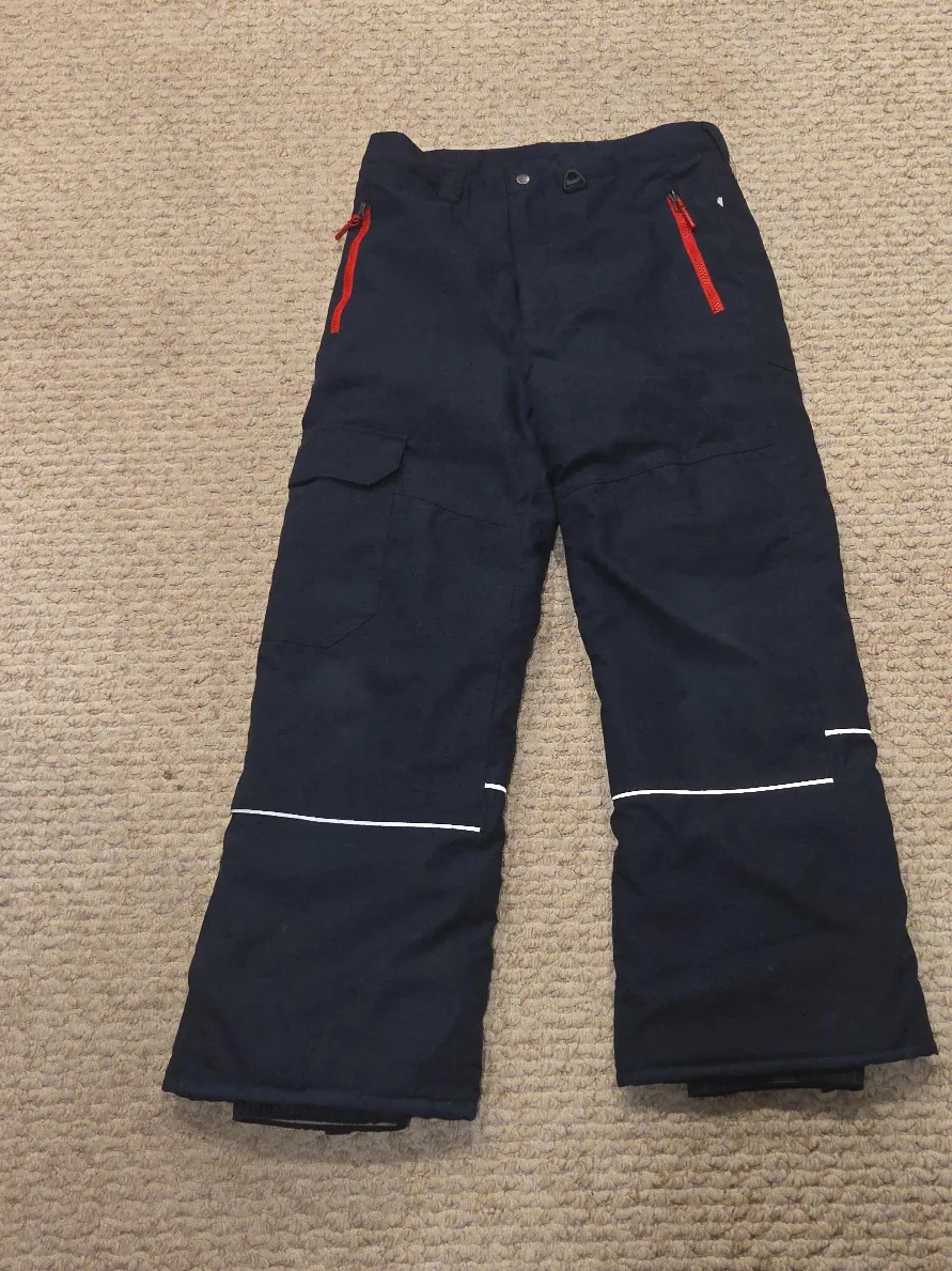 Selling a pair of Kids Monster snow pants in size 14. Brand new without tags. Bought as a set but only used the jacket. The pants are navy blue colour with red zippered pockets/front. reflective stripe on bottom of legs. adjustable velcro waist and zipper attachment at the back if you have a set of shoulder straps you want to attach (not included).