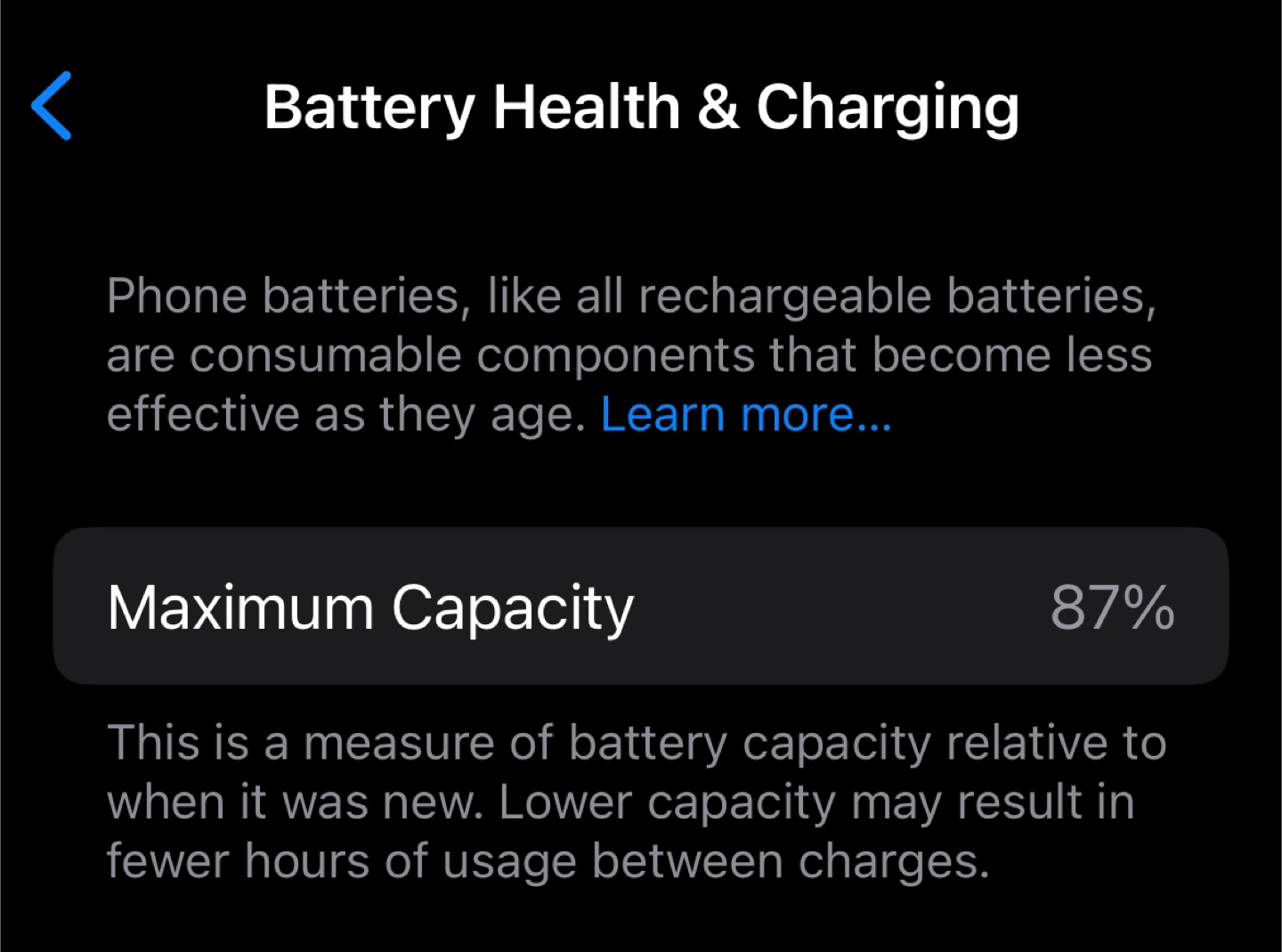 Battery health 87%.