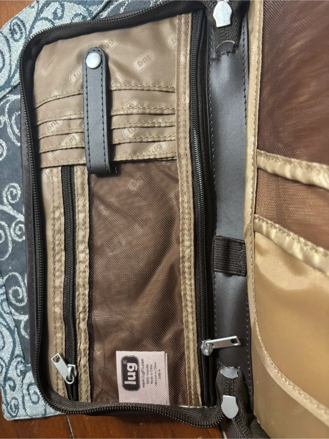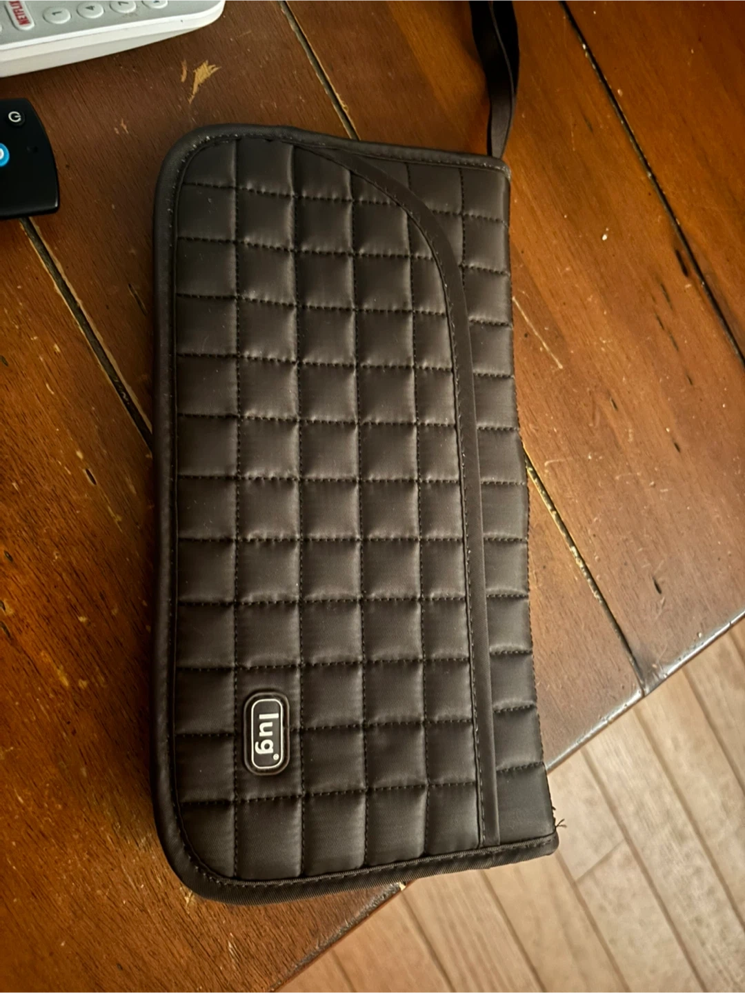 Lug travel wallet in brown with a quilted exterior. It's perfect for keeping your travel documents and essentials organized! Like new