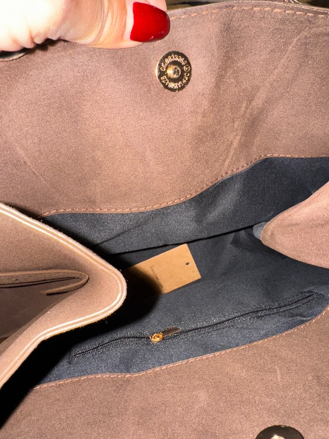 This bag is made of fine Faux Suede fabric.