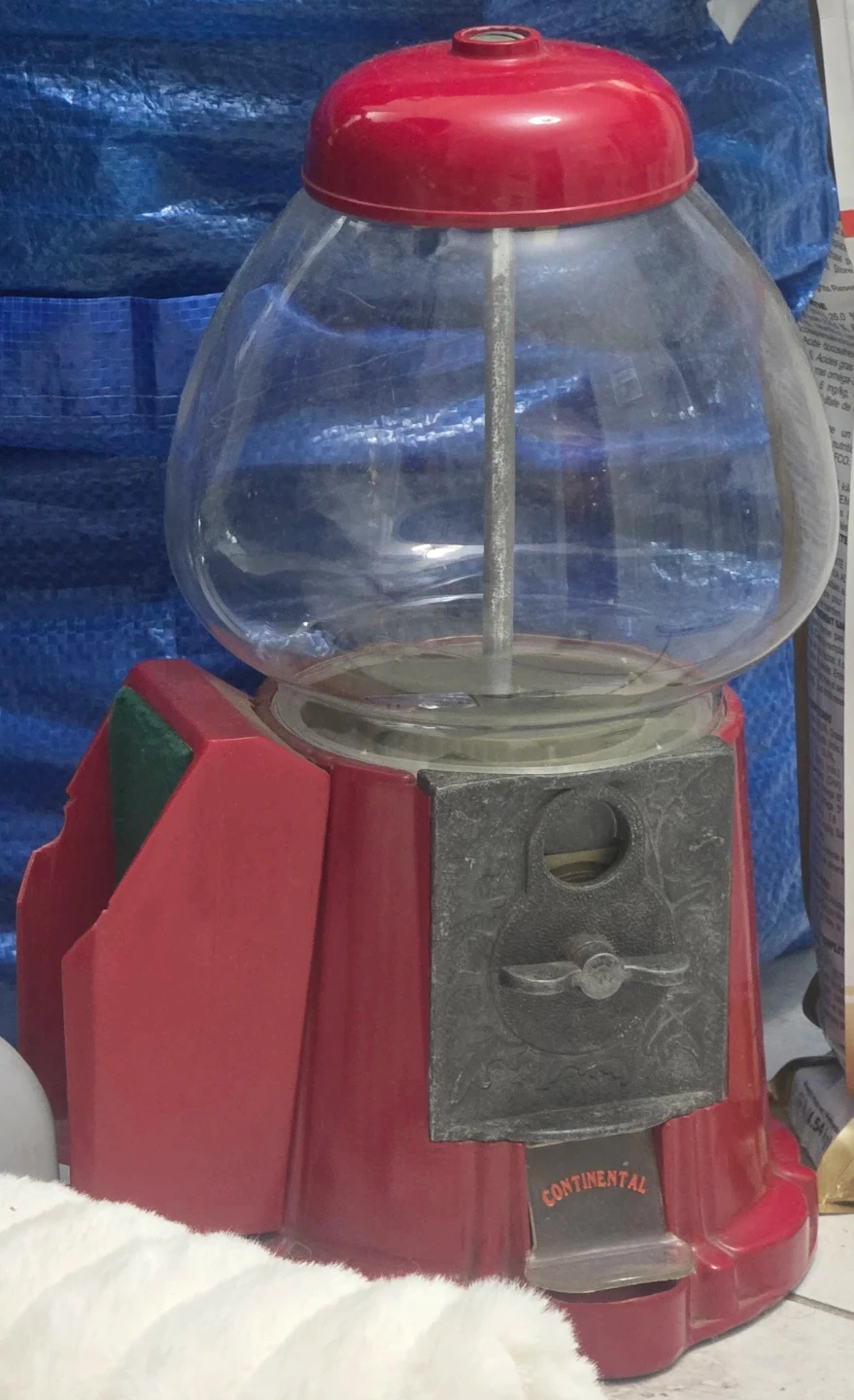 It's red with a clear globe. A fun piece of nostalgia for any space. Wonderful conversation starter.