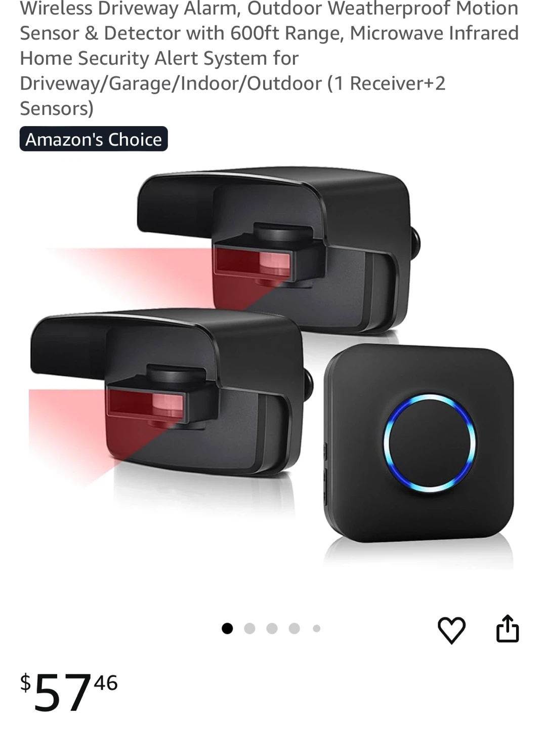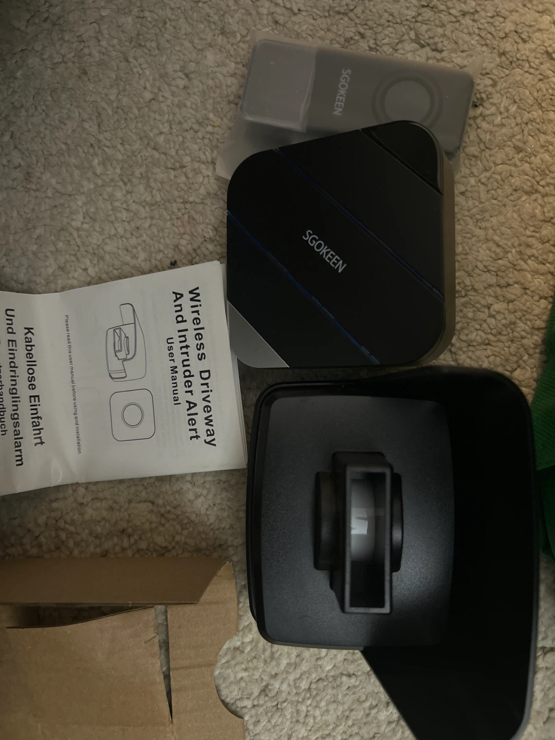 Selling a SGOKEEN wireless driveway and intruder alert system. It comes with the user manual and all the components in the box. This system has a 600ft range and uses microwave infrared motion sensors for home security. It's suitable for driveway, garage, and indoor/outdoor use