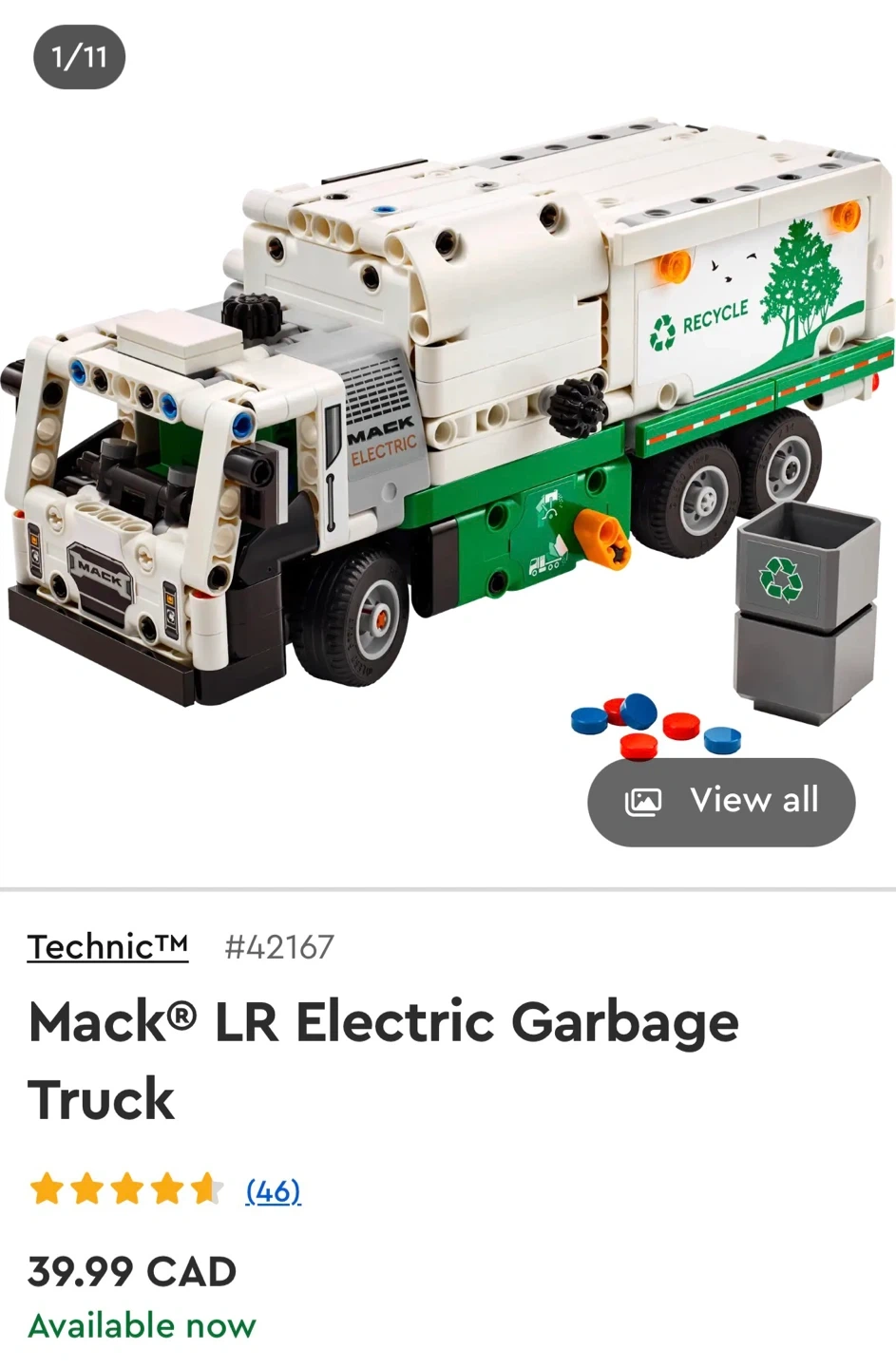 Selling Lego Technic Mack® LR Electric Garbage Truck 42167