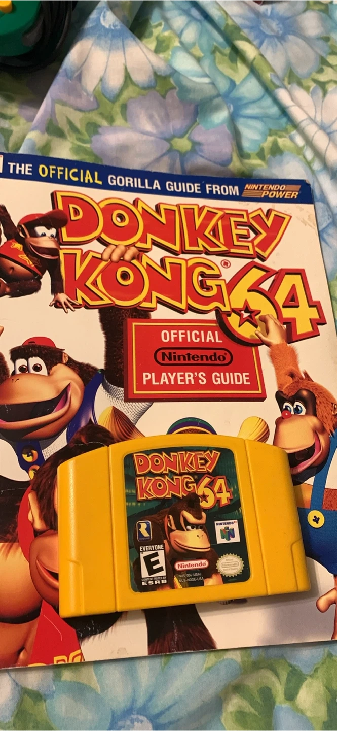 Selling a used Donkey Kong 64 game for the Nintendo 64! It's a yellow cartridge and comes with the official player's guide from Nintendo Power. Great for some nostalgic gaming!