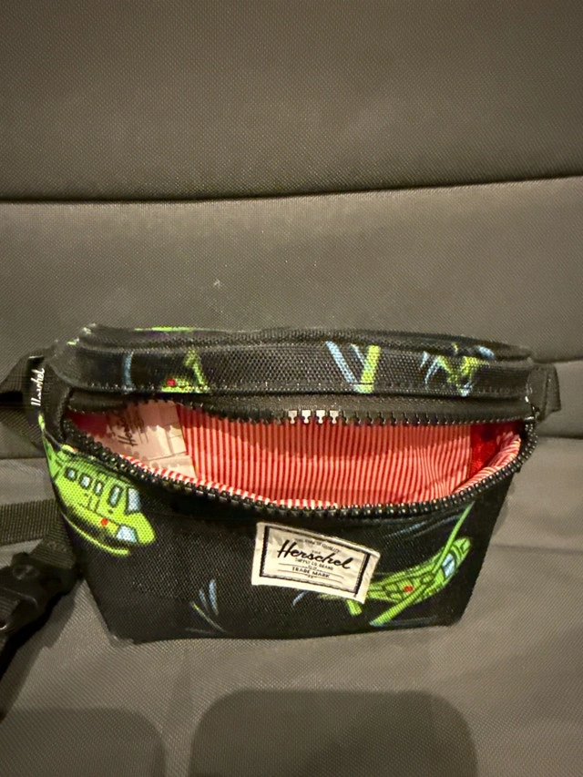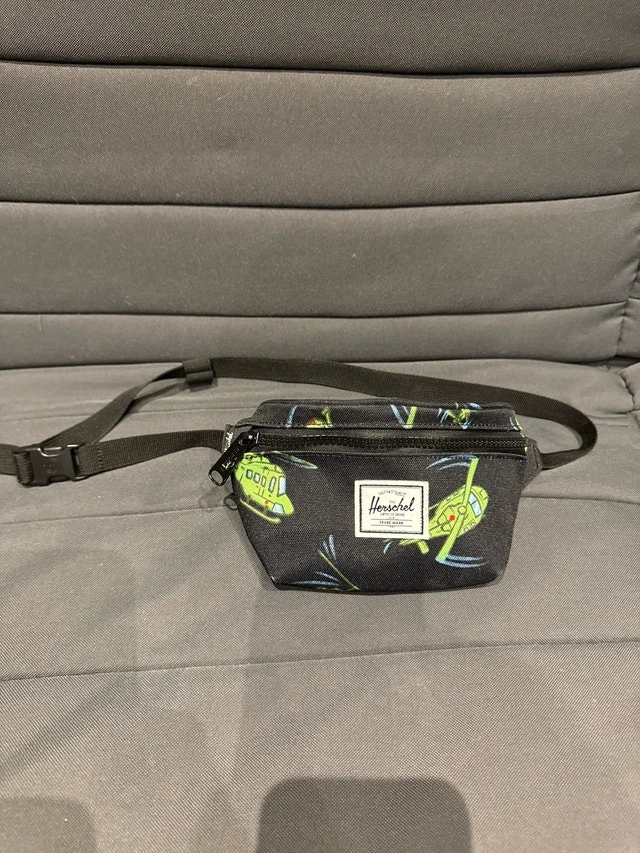 Snag this super cute Herschel Fifteen hip pack, perfect for keeping your essentials close at hand! It's in good condition and features a fun helicopter print.