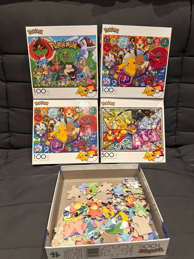 Get ready to catch 'em all with this fun Pokemon puzzle bundle! This bundle includes 4x 100-piece puzzles and one 500-piece puzzle, perfect for Pokemon fans of all ages.