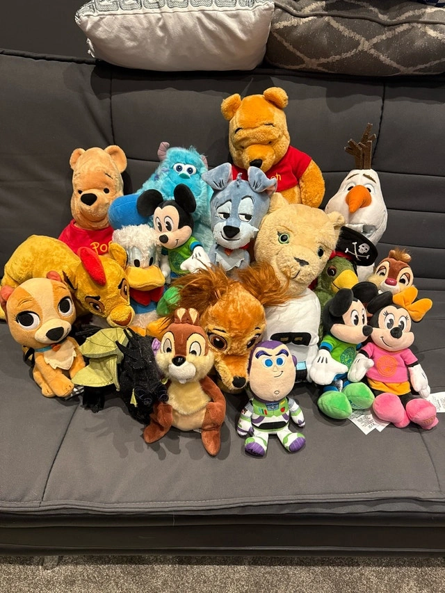 This is a collection of Disney plush toys that would make a great addition to anyone's collection! They are in used condition but have been well-cared for. Most of these are direct from Walt Disney Parks in Florida. Take them all for only $5 !