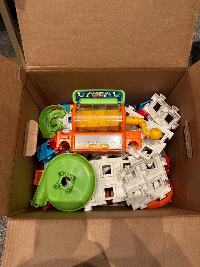 This is a VTech Marble Rush set, ready to provide hours of educational fun. It is in used condition, as you can see from the photos, but all the pieces are here! No manuals are included but they can be found online. - Interactive marble race set with multiple configurations - Includes various building pieces, ramps, and obstacles - Encourages STEM learning by developing problem-solving and fine motor skills Looking for a fun and educational toy that will keep the kids occupied for hours? This marble rush set is the ticket!