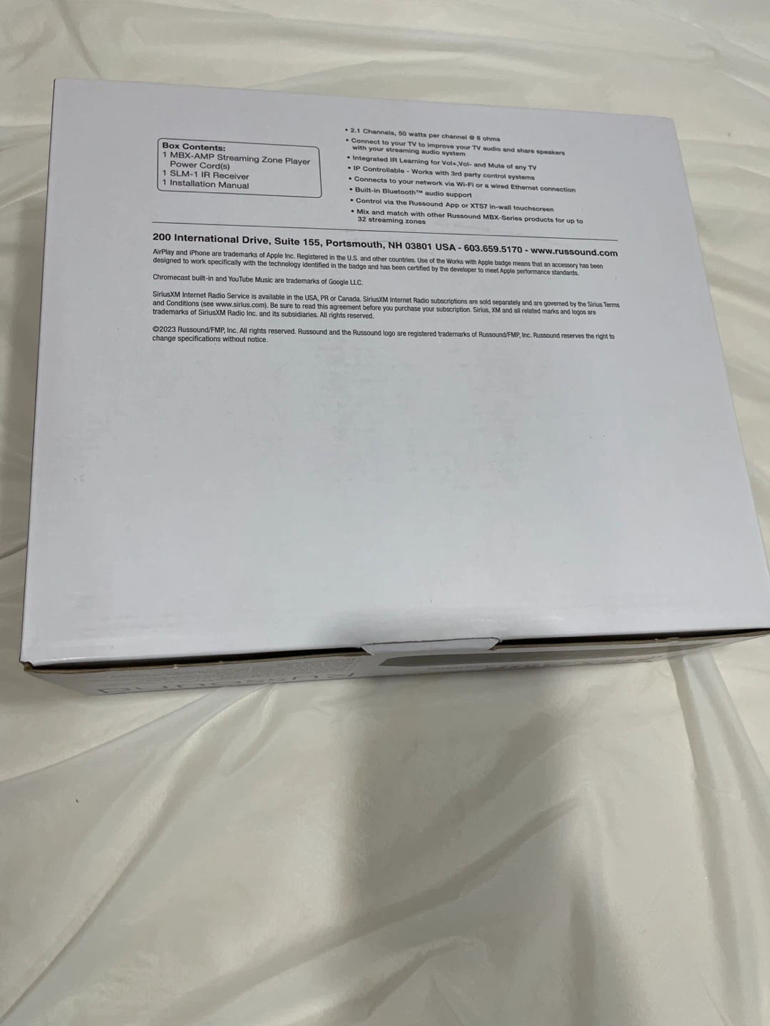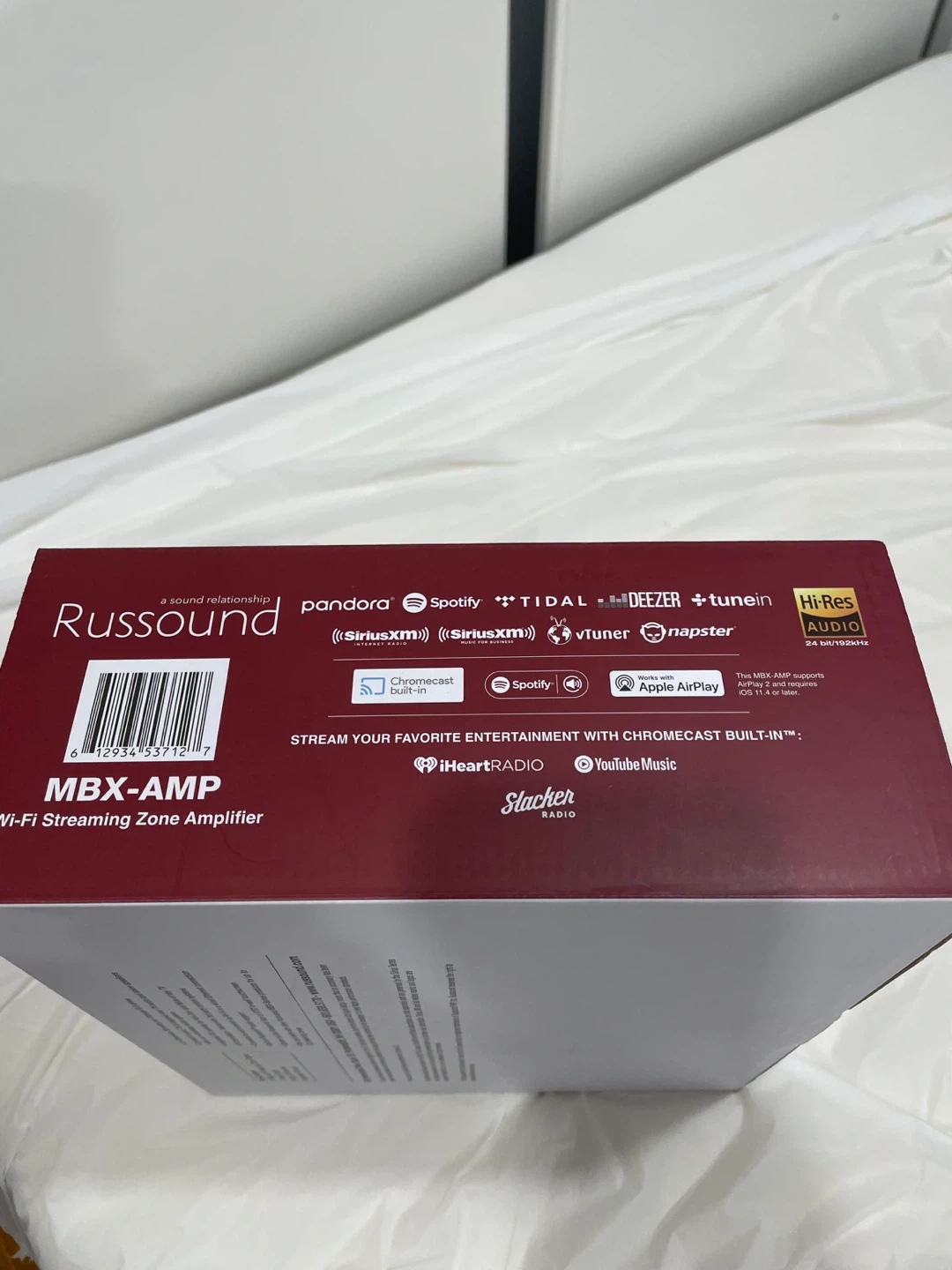 Selling a brand new Russound MBX-AMP Wi-Fi Streaming Zone Amplifier in its original box! This amplifier supports various streaming services such as Spotify, TIDAL, Deezer, and TuneIn. It features Chromecast built-in, iHeartRadio, Slacker Radio, and YouTube Music. The MBX-AMP has Hi-Res Audio 24 bit/192kHz support. It also has Bluetooth audio support and can connect to your network via Wi-Fi or a wired Ethernet connection