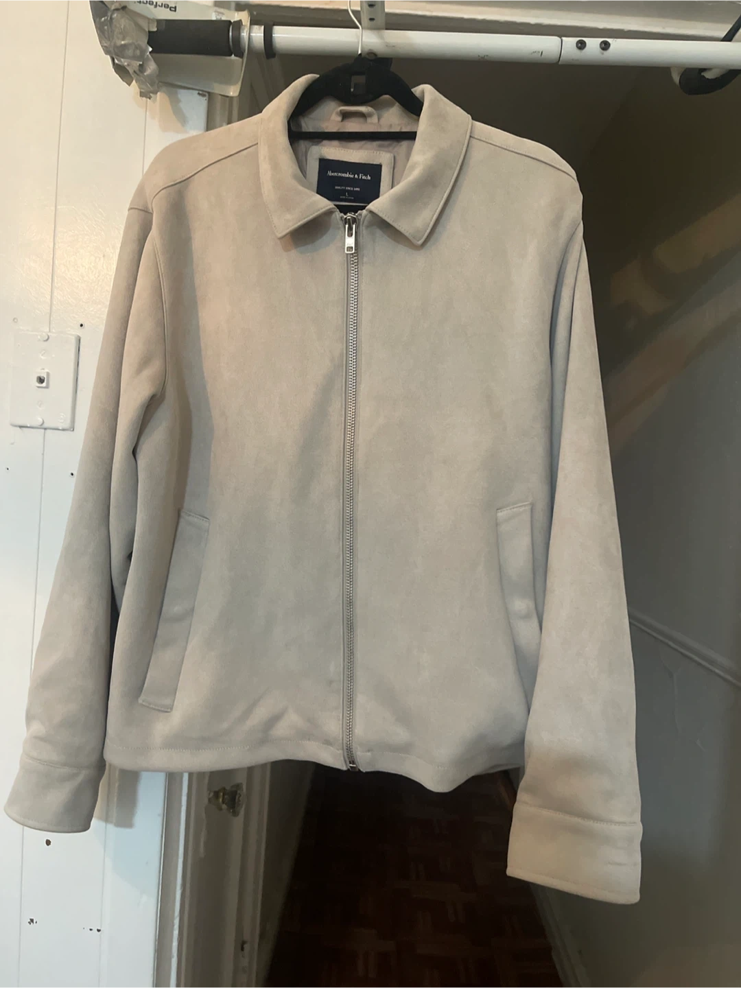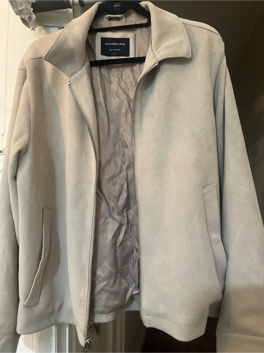 Selling an Abercrombie & Fitch suede jacket in size large. It's a stylish and comfortable jacket perfect for layering. The material feels great, and it's in good condition!