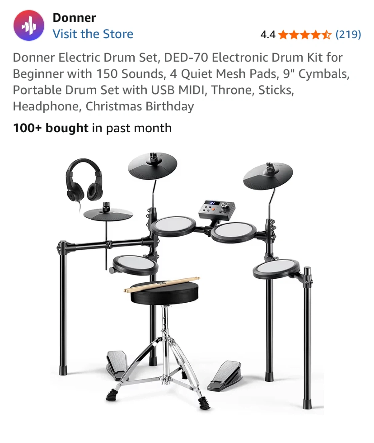 Selling a Brand New Donner DED-70 Electronic Drum Set in excellent condition! It's perfect for beginners and comes with 150 sounds and 4 quiet mesh pads.
