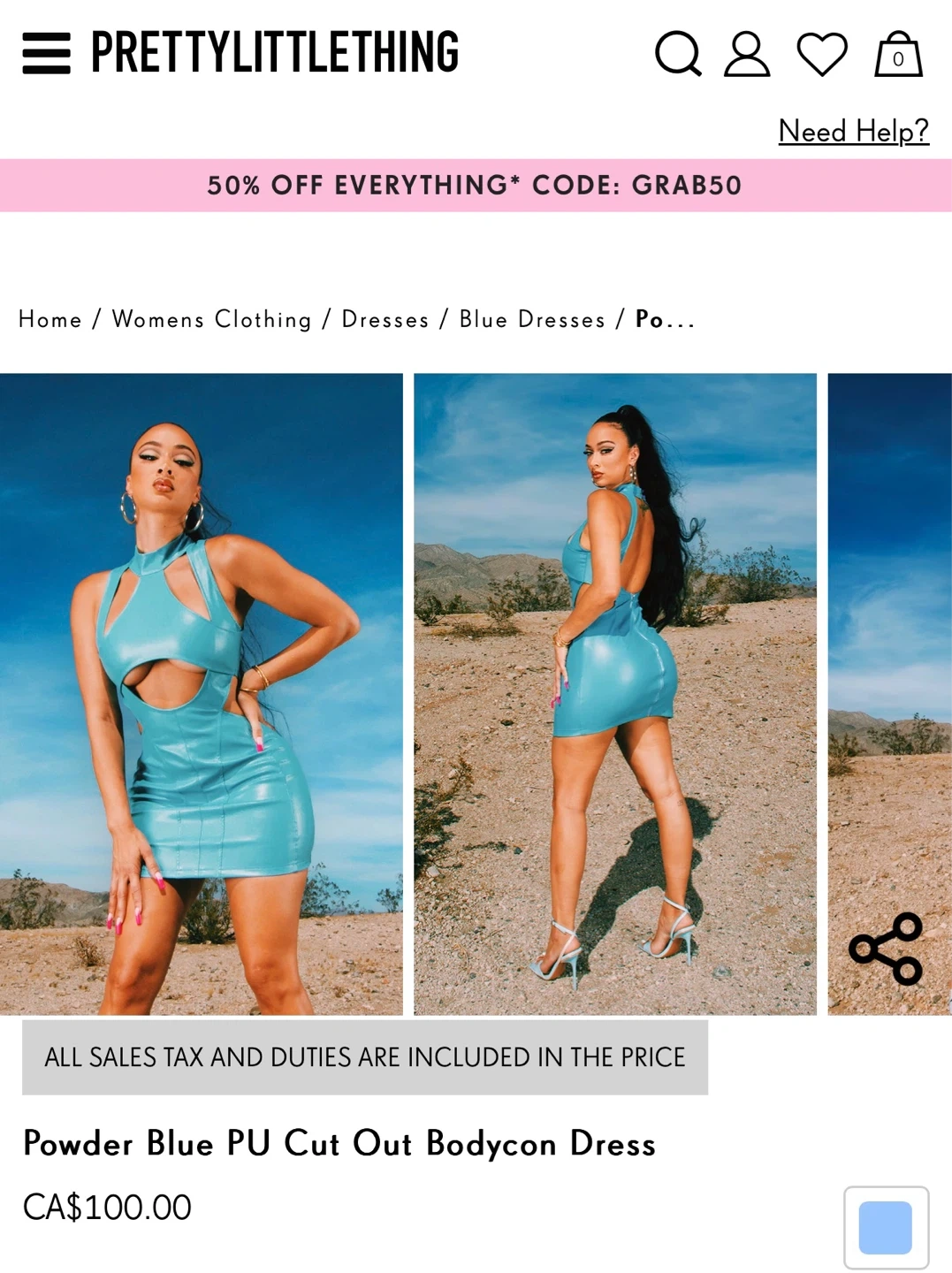 Selling a PrettyLittleThing bodycon dress in powder blue! It's a size 4 and has a unique cut-out design. The material is PU.