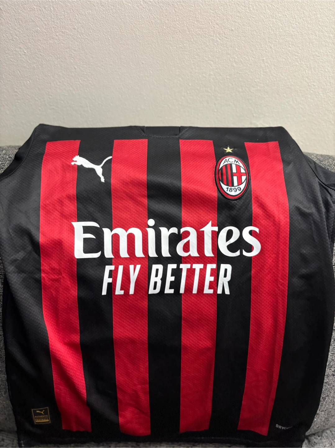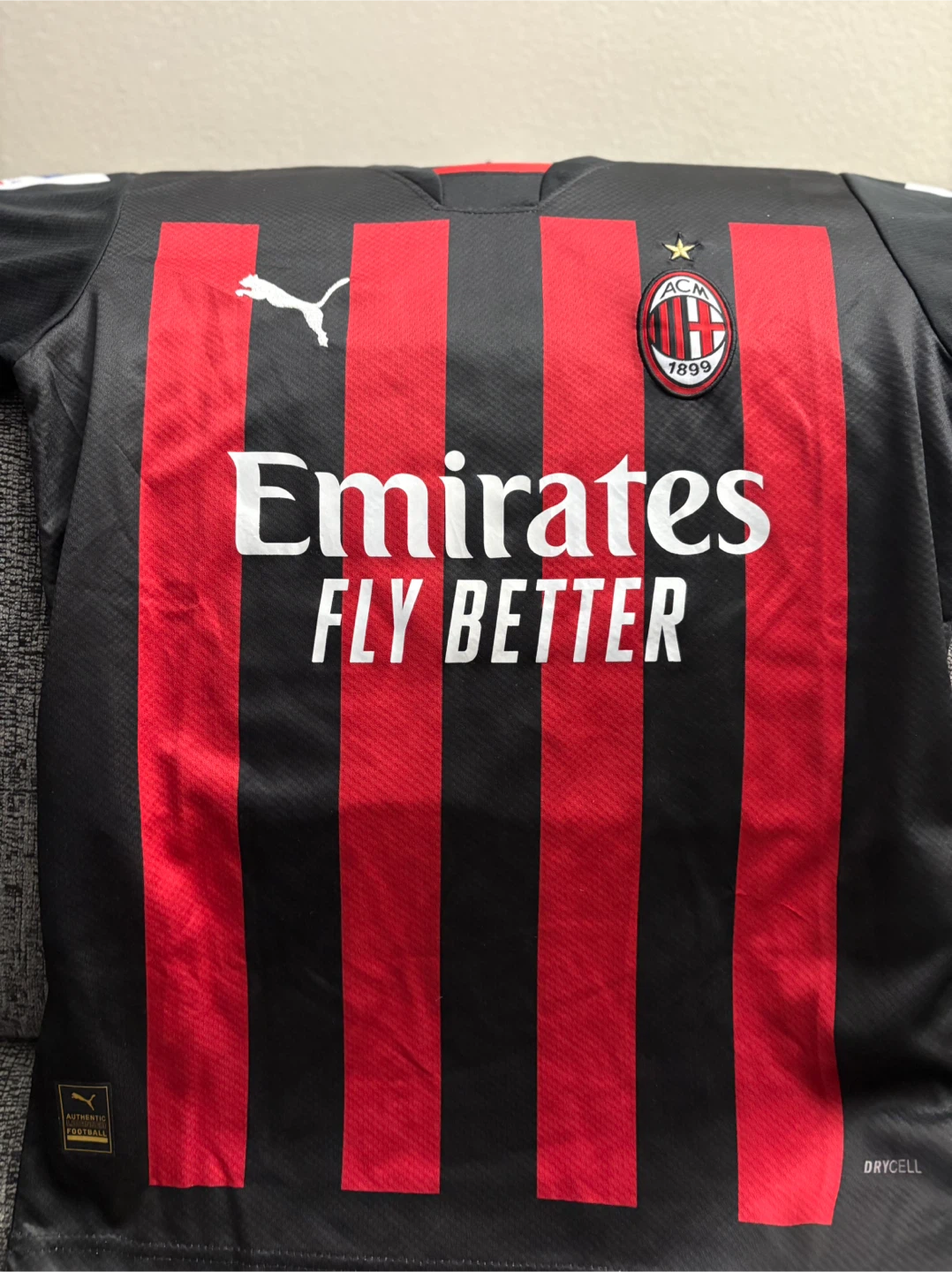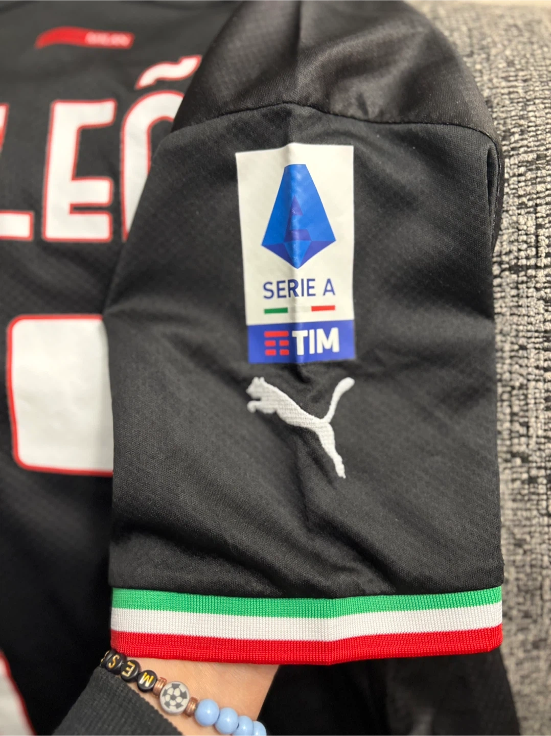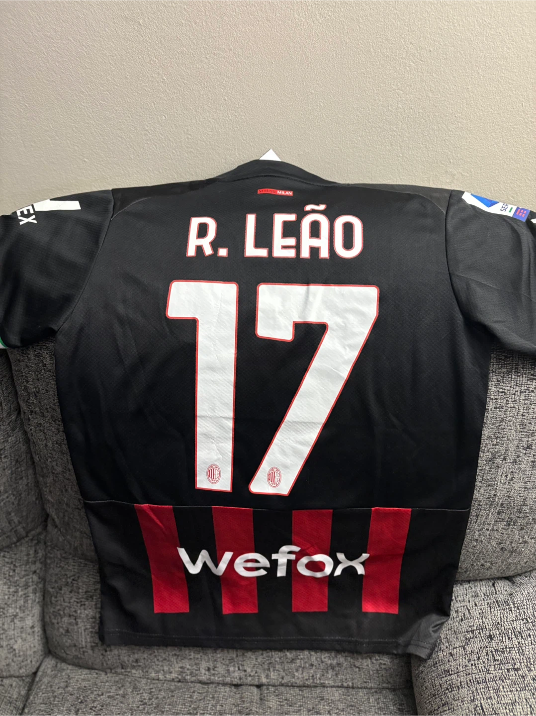 Selling a Puma AC Milan jersey with R. Leão and the number 17 on the back. It's a size small and features the Emirates FLY BETTER logo on the front. The jersey also has the Serie A TIM patch on the sleeve. Perfect for any AC Milan fan!