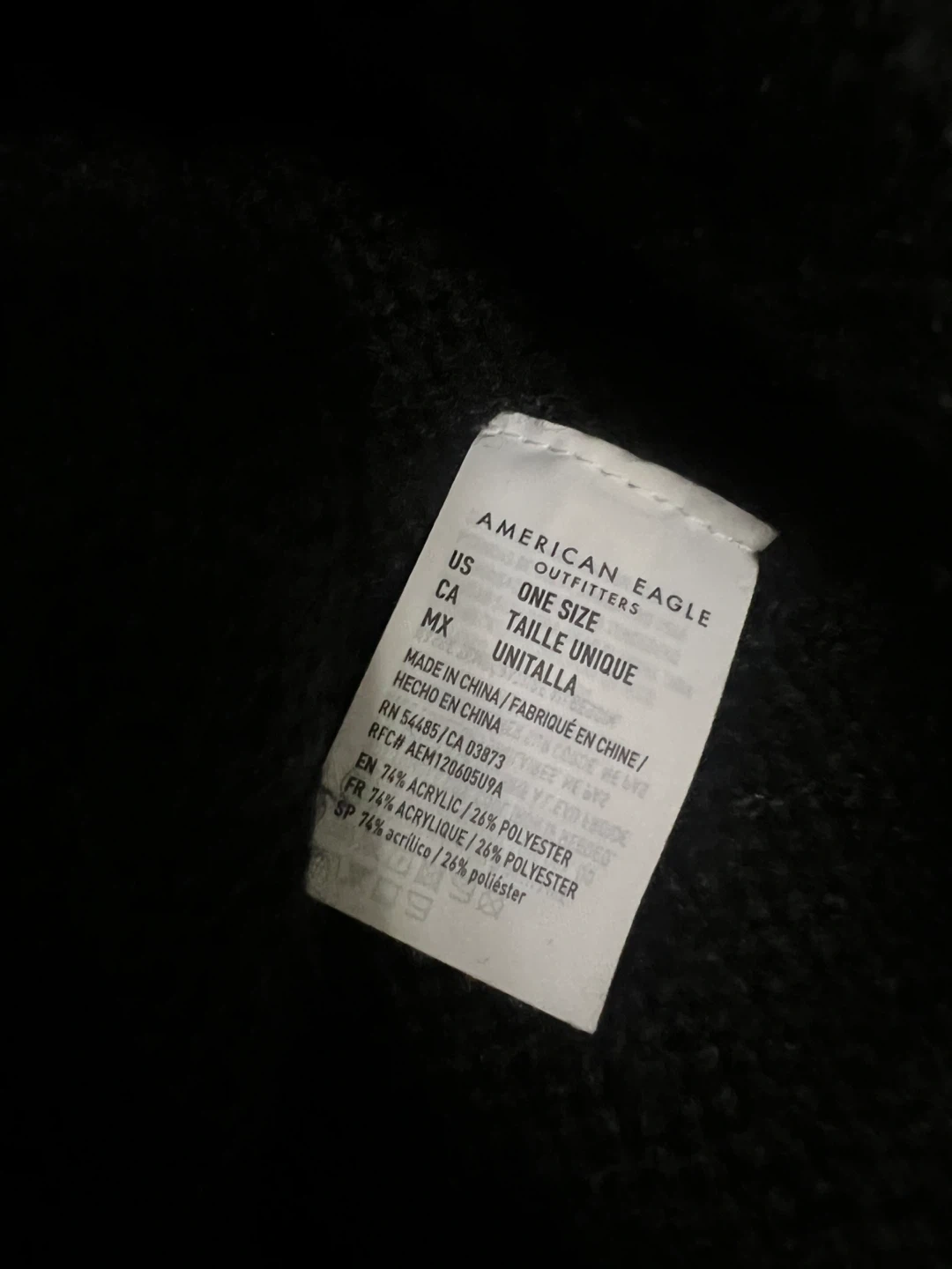 Seeking a black soft and warm headband from American Eagle Outfitters. It's a one-size-fits-all item and made of 74% acrylic and 26% polyester. Perfect for keeping your hair back and your ears warm in the winter!